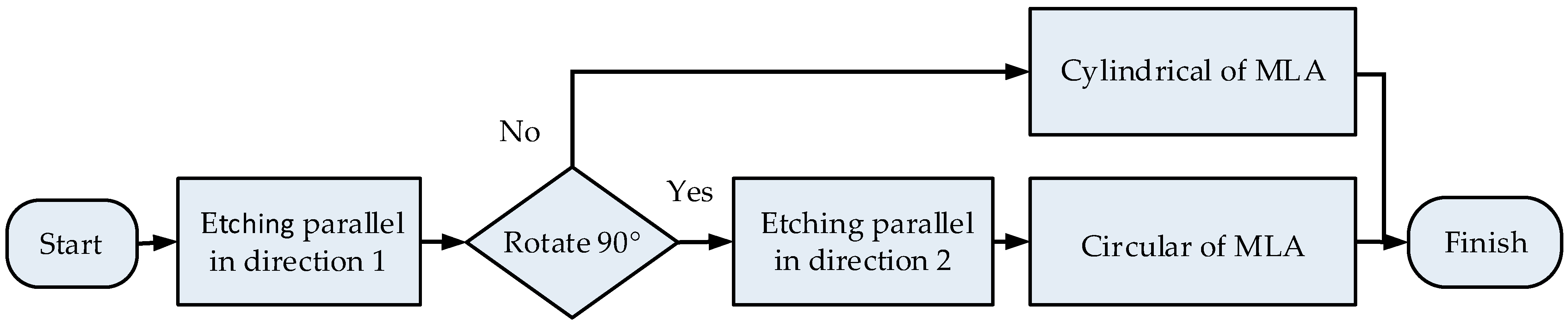 - Huang, S.Q.; Song, Z.Y. Rapid fabrication and characteristics analysis of high-filling-factor microlens array. Infrared Laser Eng. 2021, 50, 329–333. [Google Scholar]