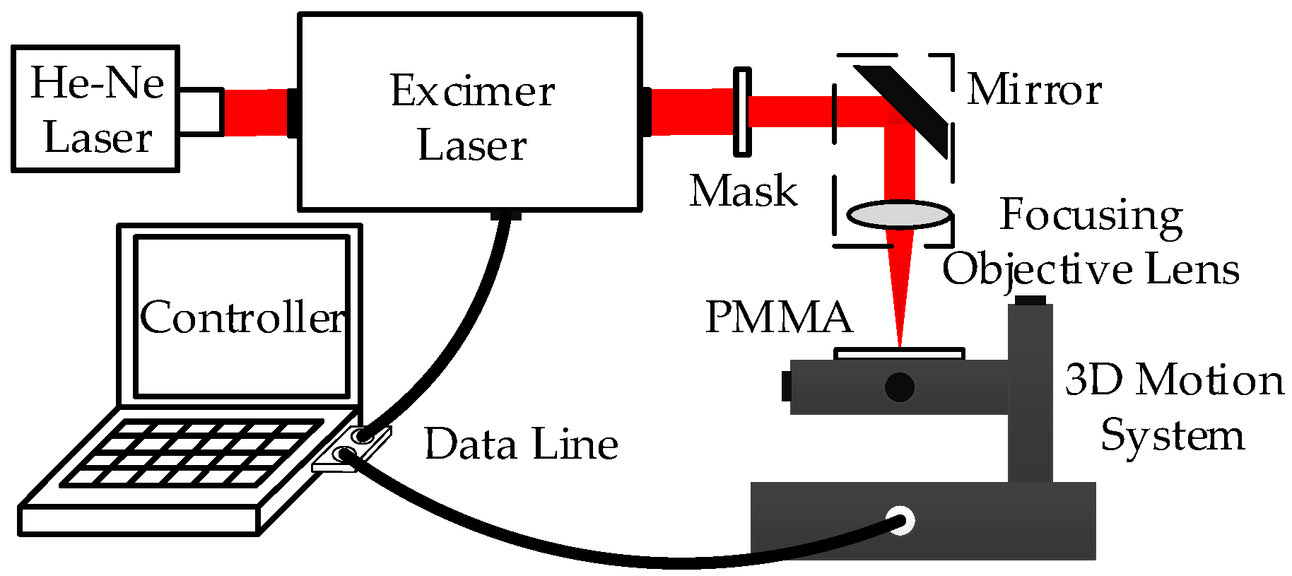 - Shao, J.Z.; Liang, X. Excimer laser marking—A precise patterning technique for material surfaces. Opt. Laser Technol. 2024, 176, 110974. [Google Scholar] [CrossRef]