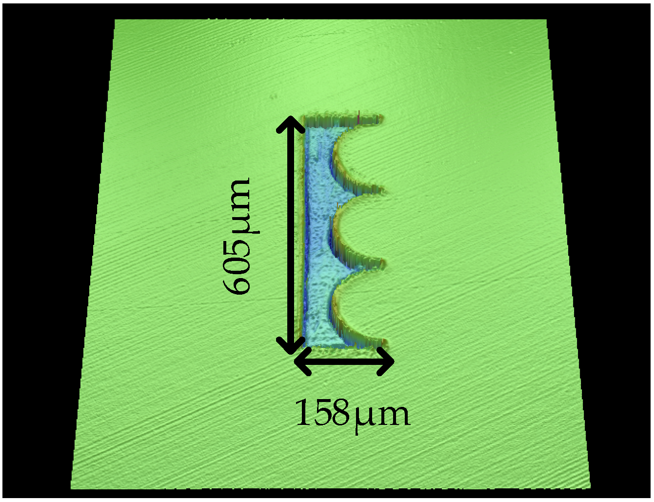 | Parameter | 248 nm | 720 mJ | 30 ns | 25 Hz | 0.02 mm/s |