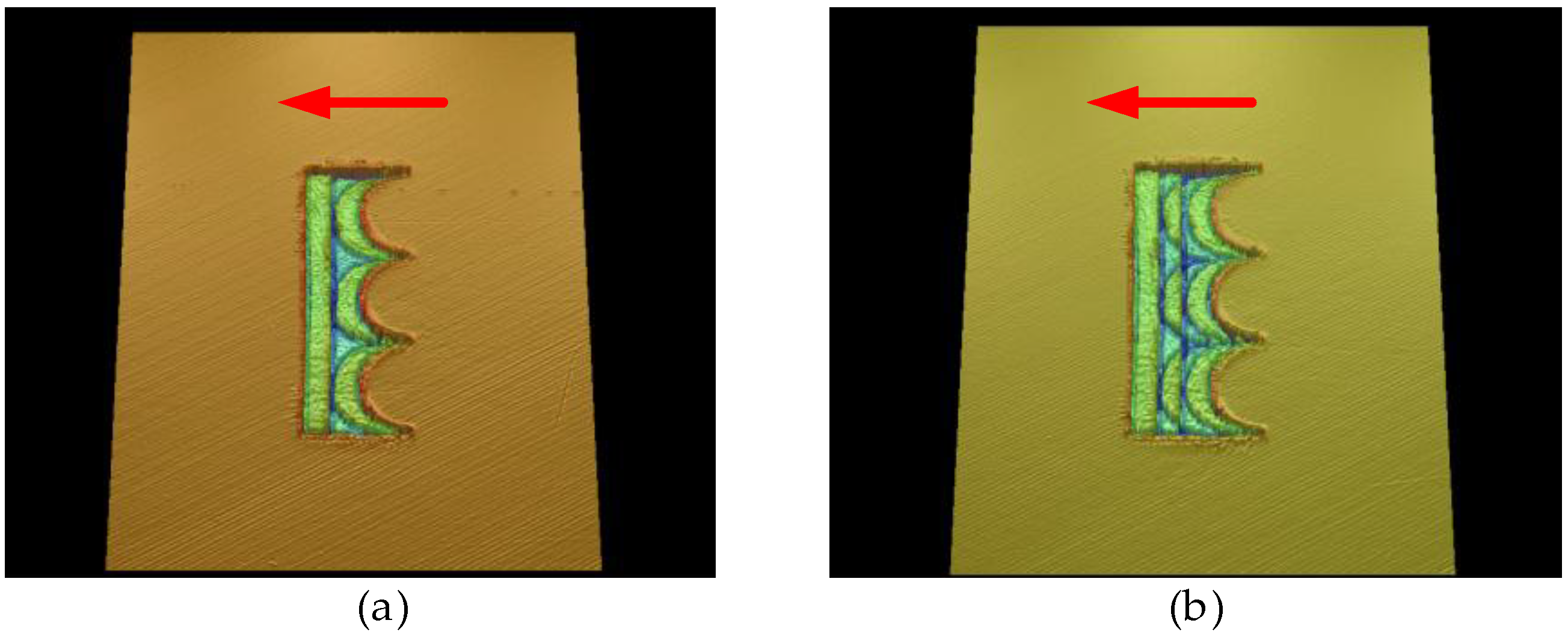 - Qin, D.; Guo, J. Surface Characterization and Tribology Behavior of PMMA Processed by Excimer Laser. Chin. J. Mech. Emg. 2023, 36, 60–76. [Google Scholar] [CrossRef]