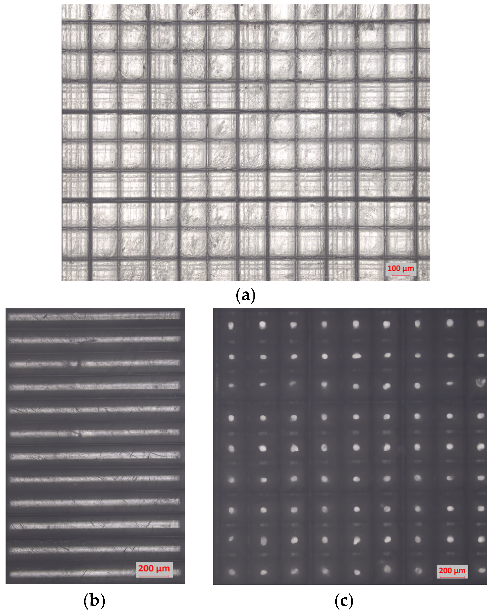 - Zolfaghari, A.; Zhang, L. Replication of plastic microlens arrays using electroforming and precision compression molding. Microelectron. Eng. 2021, 239–240, 111529. [Google Scholar] [CrossRef]