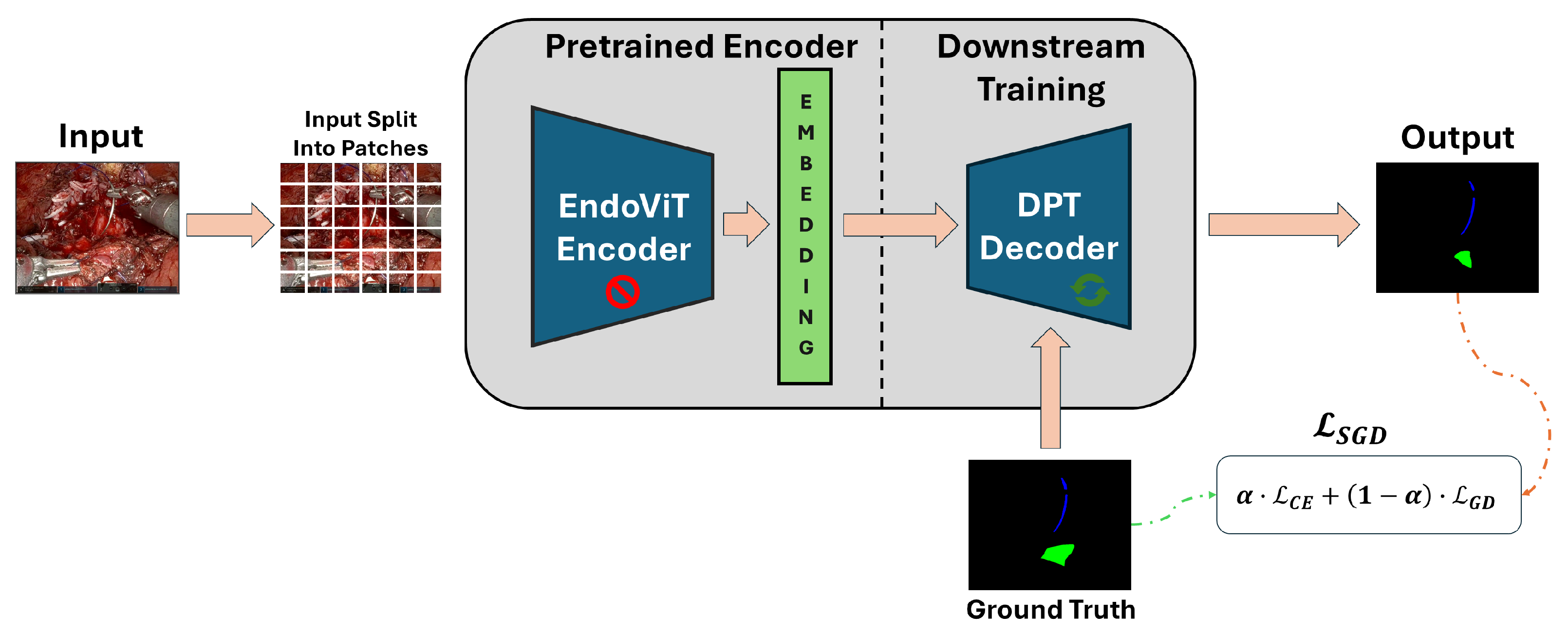 - We formulate and tackle the clinically relevant pixel-level segmentation of mucosal tissue and suture needles specifically during the VUA step of RARP, using real annotated endoscopic videos combined with a DL-based framework;