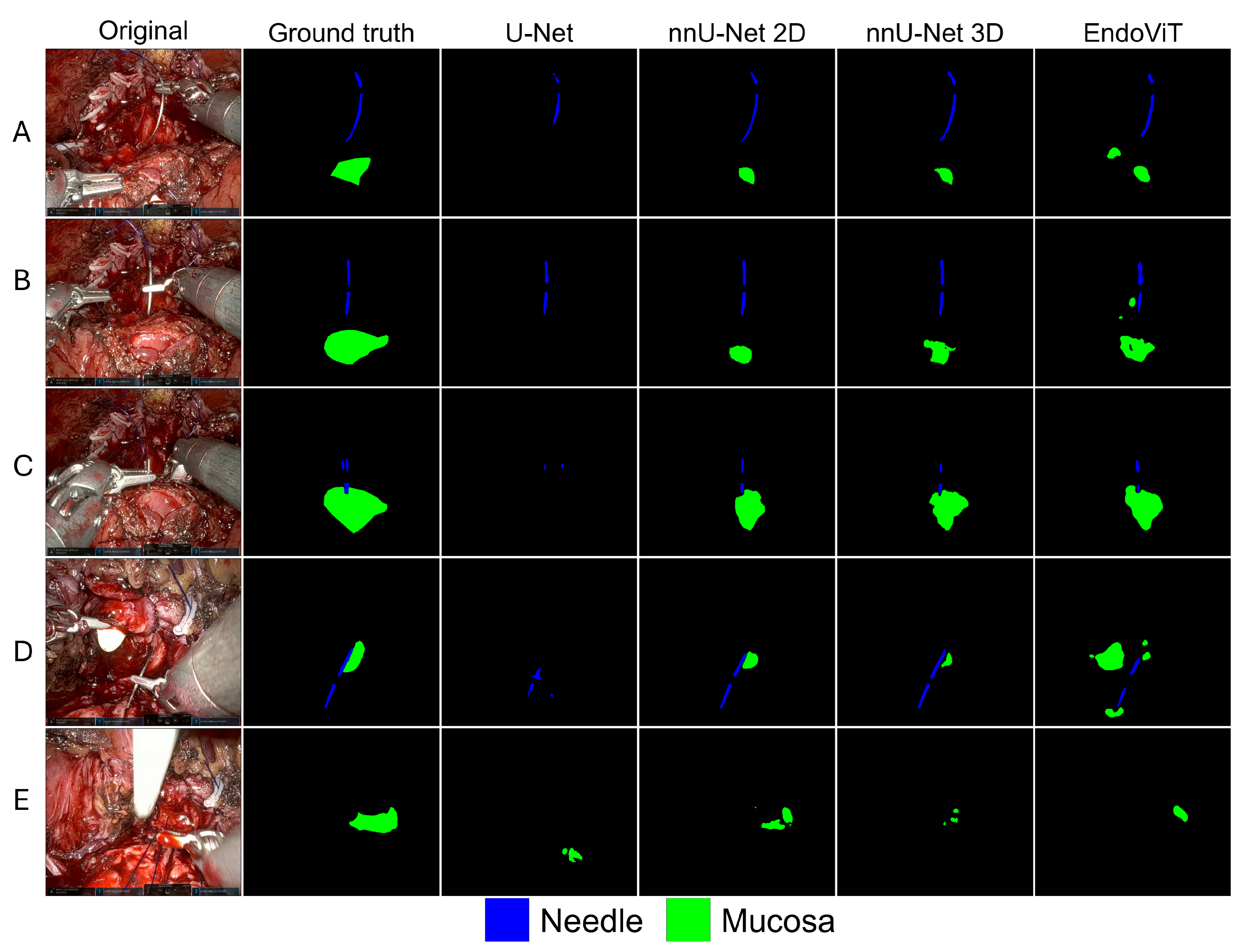 EndoViT | U-Net | nnU-Net 2D | nnU-Net 3D | |