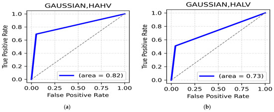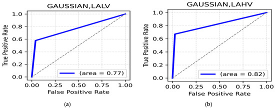 The Gaussian method achieved high classification accuracies across all classes (Table 17), with accuracies of 98% for the negative and neutral class and 100% for the positive class, providing an overall accuracy of 99%. ROC curves (Figure 16a) display all three classes achieving an AUC of 1.00, indicating perfect separability.