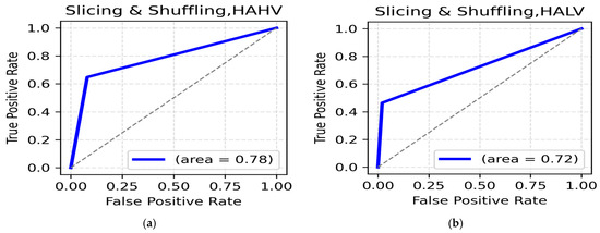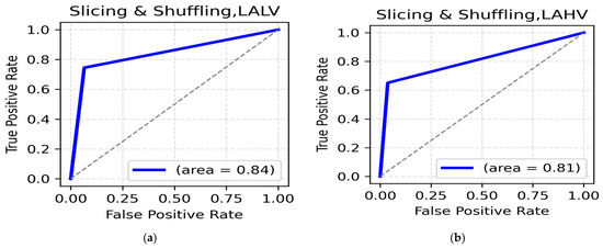 Data slicing and shuffling provided mixed results, with accuracies of 71% for negative emotion, 80% for neutral, and 91% for positive emotion, yielding an average value of 81% (Table 17). Figure 16b reflects AUC values of 0.88 for negative, 0.94 for neutral, and 0.99 for positive emotions. The reduced performance for the negative class suggests that slicing and shuffling may not be the optimal choice for EEG classification.