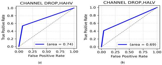 Dropping channels randomly achieved good results, with accuracies of 93% for boring, 95% for calm, 94% for horror, and 92% for funny, giving an overall accuracy of 93.8% (Table 18). ROC curves (Figure 17d) represent perfect separability with AUC values of 0.99 across all classes. These results suggest that even with randomly dropped channels, sufficient discriminative features remain for effective classification.