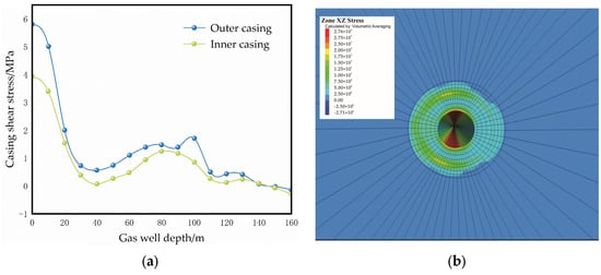 4.2. Shear Stress Distribution Characteristics of Casing in Gas Wells Affected by Production Activities