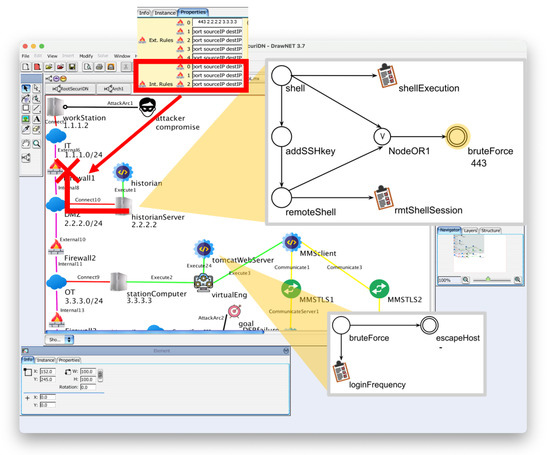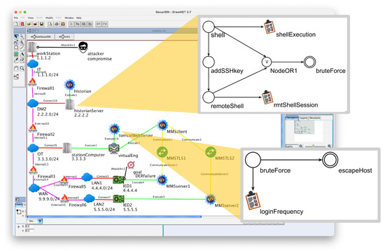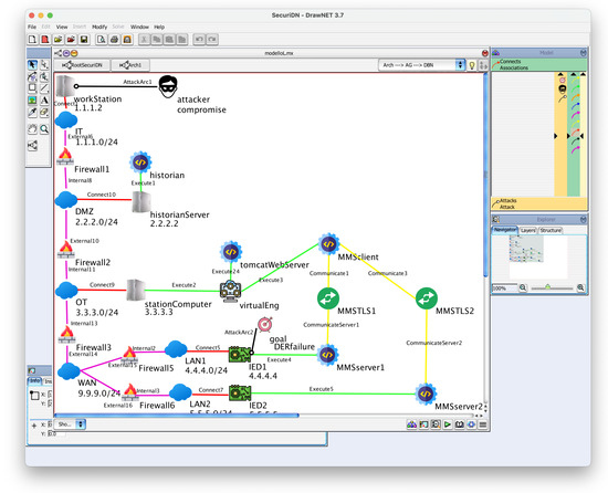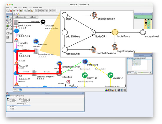 SecuriDN [5] is a tool we implemented over the framework DrawNET Modeling system (DrawNET) [31]. It allows us to graphically define the architecture of an IT/OT system, including the attacks to which the system is possibly vulnerable and the parameters that characterize the various attack steps. This information is derived from the MITRE ATT&CK project. Its name recalls that it is a specialization of DrawNET.