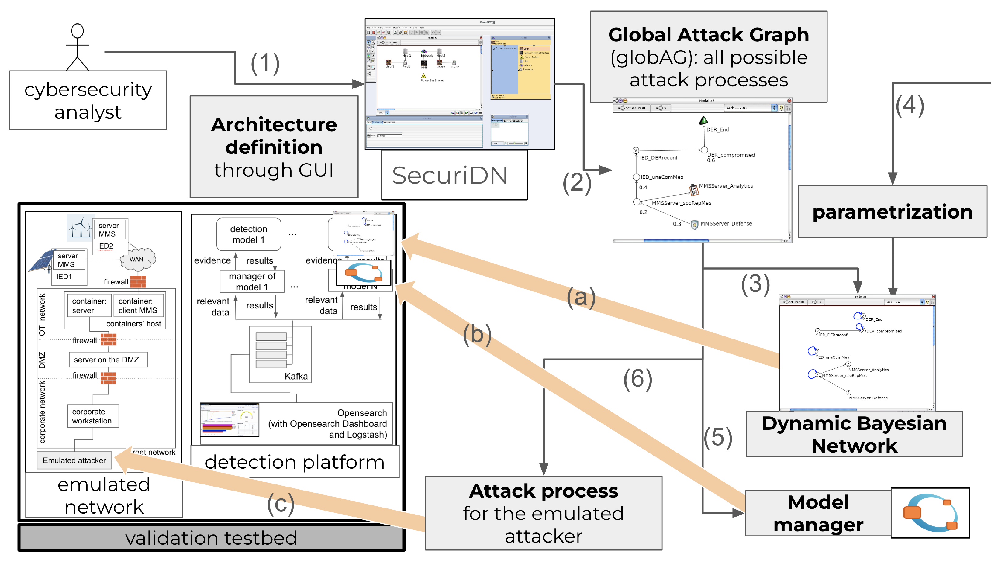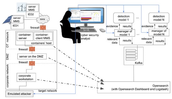 - Cerotti, D.; Codetta Raiteri, D.; Dondossola, G.; Egidi, L.; Franceschinis, G.; Portinale, L.; Terruggia, R. A Modular Infrastructure for the Validation of Cyberattack Detection Systems. In Power Systems Cybersecurity: Methods, Concepts, and Best Practices; Haes Alhelou, H., Hatziargyriou, N., Dong, Z.Y., Eds.; Springer International Publishing: Cham, Switzerland, 2023; pp. 311–336. [Google Scholar] [CrossRef]