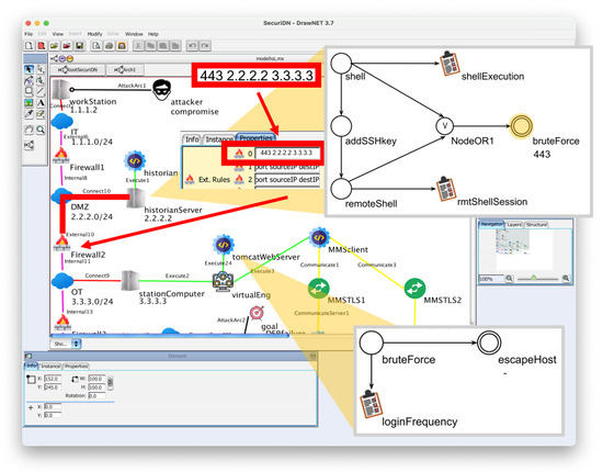 We implemented a graphical tool called SecuriDN, which is based on the framework DrawNET Modeling System (see Section 3.2). The software for emulation of attacks is called Netsploit (see Section 6), because it has Metasploit at its core, although it can also carry out offensive steps that are not available in Metasploit.