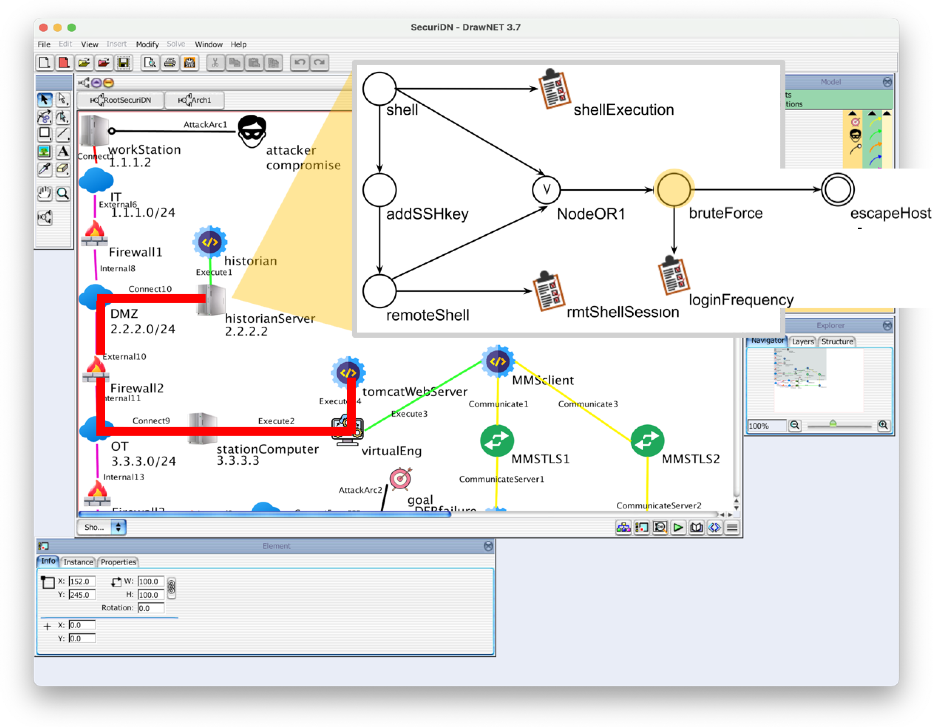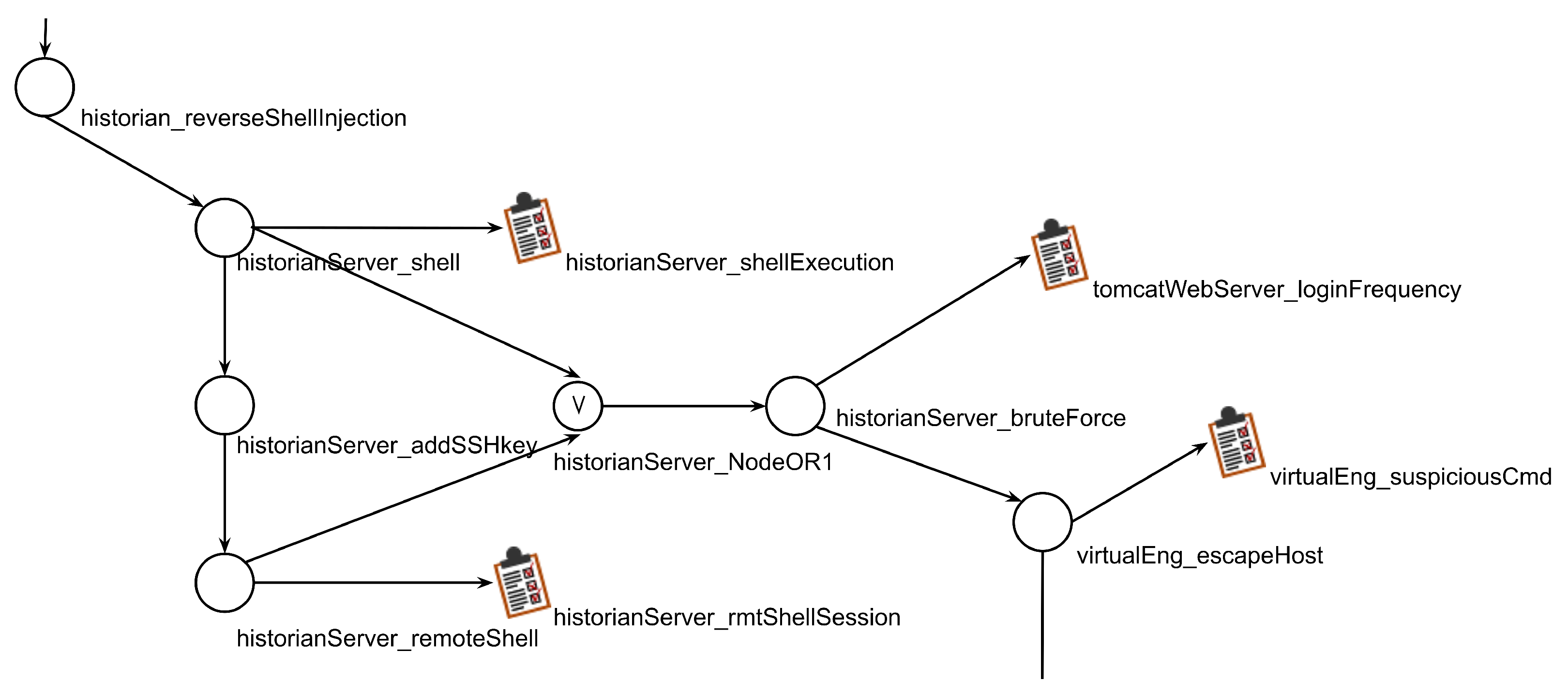 - shell implements the technique Command Line Interface for the tactic Execution of the ICS ATT&CK matrix. The precondition for this attack is that the attackers have user access on the target host. They obtain a shell on the host. When building the globAG, this technique will be merged with the external shell from the locAG of Figure 10a.
