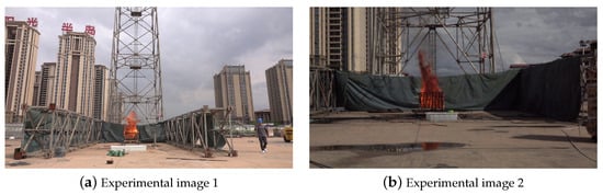 To overcome the limitations of Internet data, such as restricted viewpoints, inconsistent lighting, and lack of controlled conditions, additional wildfire simulation experiments were conducted. In 2022, controlled burns were carried out in a safe, open field in Yunnan Province, China. Dried vegetation materials placed on wooden stacks were ignited to realistically simulate wildfire scenarios. Various devices, including smartphones, drones, and professional video cameras, were employed to capture the events from multiple altitudes and angles, producing a large volume of first-hand imagery under diverse lighting conditions and perspectives. Representative experimental images are shown in Figure 7.