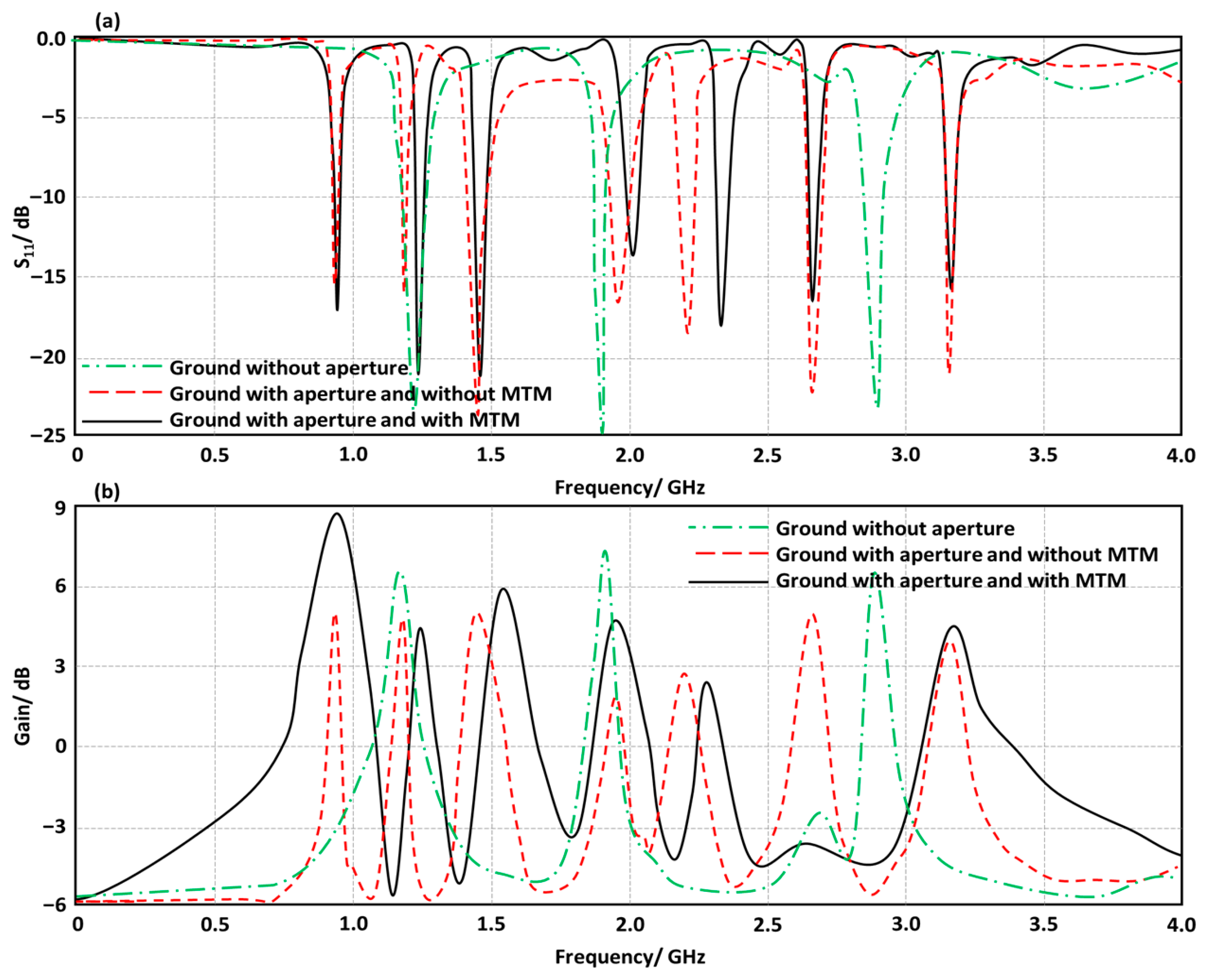 - Ajewole, B.; Kumar, P.; Afullo, T. A Microstrip Antenna Using I-Shaped Metamaterial Superstrate with Enhanced Gain for Multiband Wireless Systems. Micromachines 2023, 14, 412. [Google Scholar] [CrossRef] [PubMed]