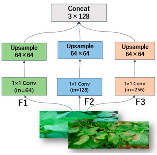Among them: Ffused is the fused feature map, Concat represents the concatenation in the channel dimension, and Fi is the upsampled feature map.