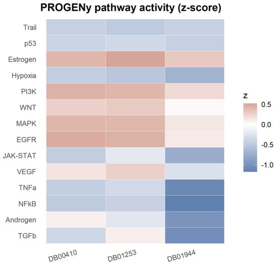 We quantified signaling pathway activity per compound using PROGENy (R package), which infers pathway activity from gene expression “footprints” learned from perturbation experiments [20].