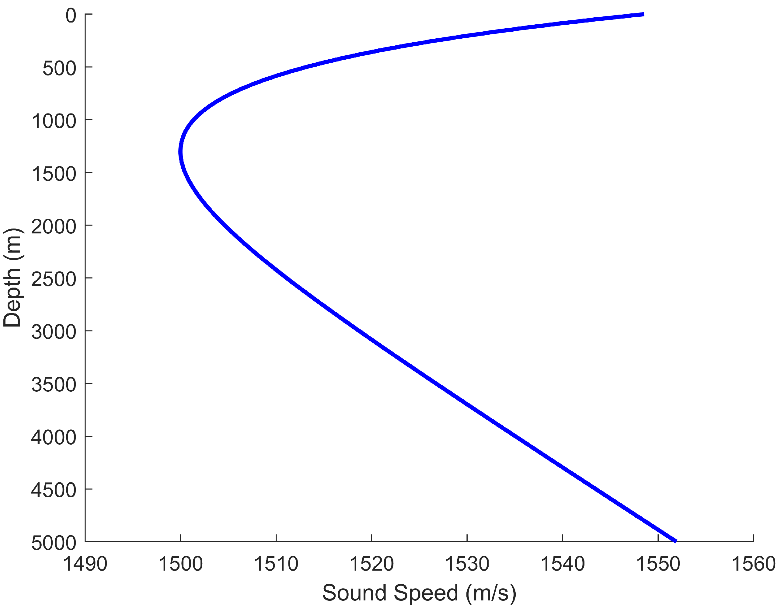 26]. The deep-sea sound speed profile (SSP) and the simulated UWA channels generated based on this SSP are shown in