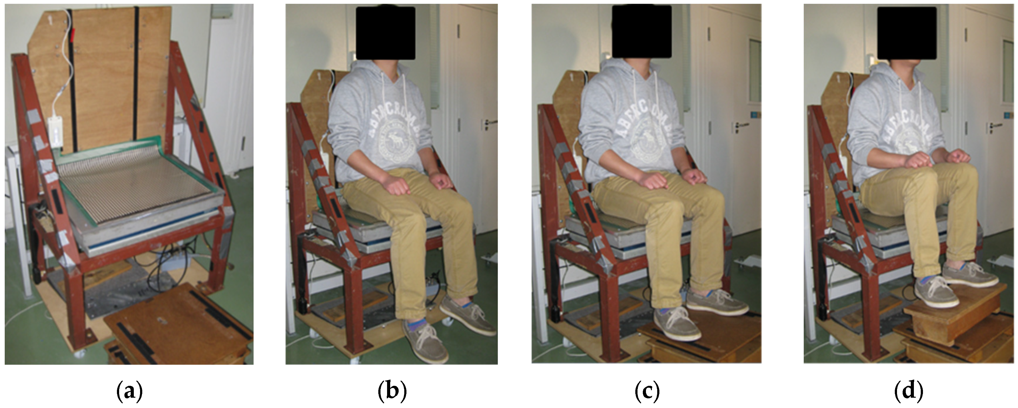 - Ebe, K.; Griffin, M.J. Factors affecting static seat cushion comfort. Ergonomics 2001, 44, 901–921. [Google Scholar] [CrossRef] [PubMed]