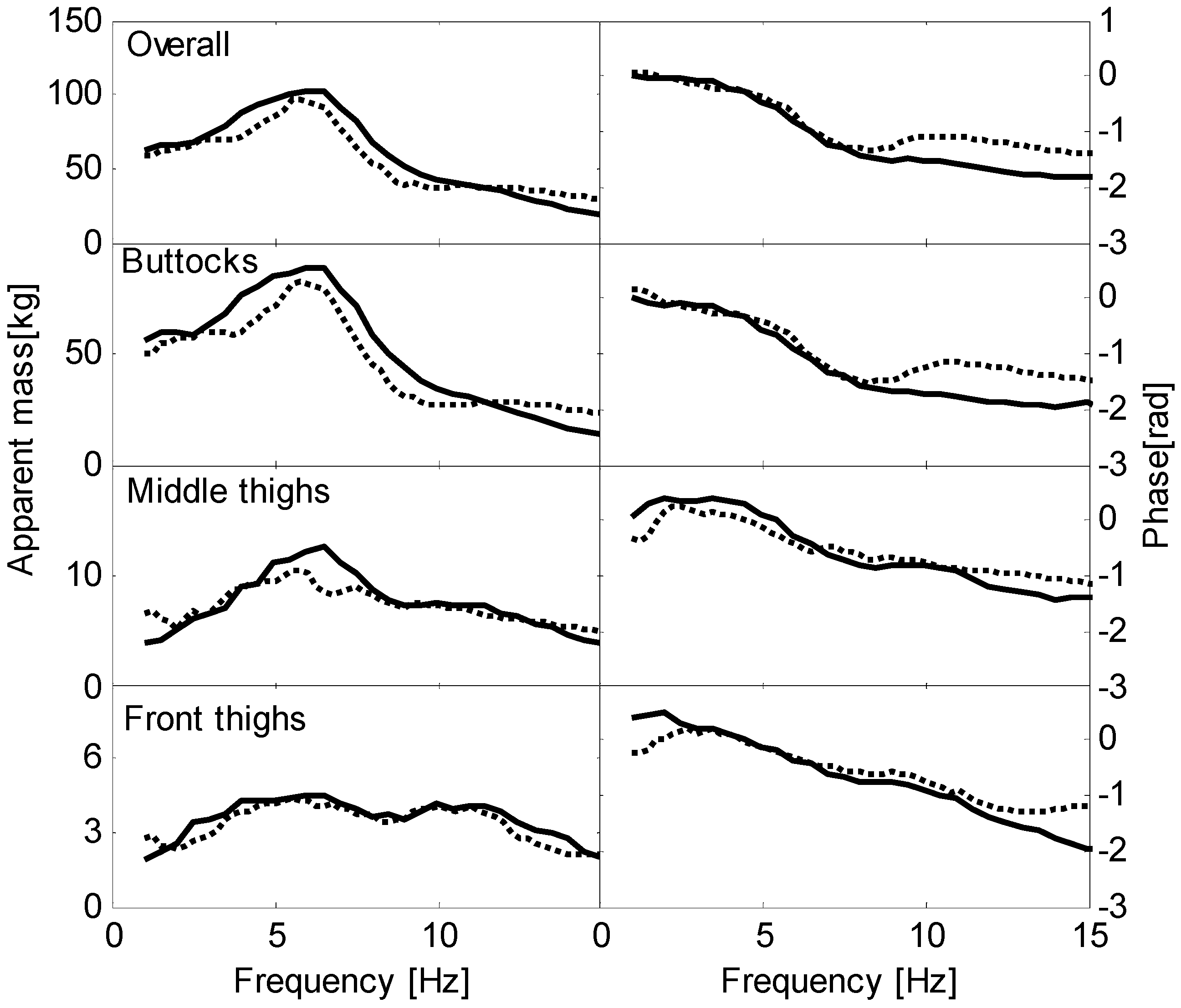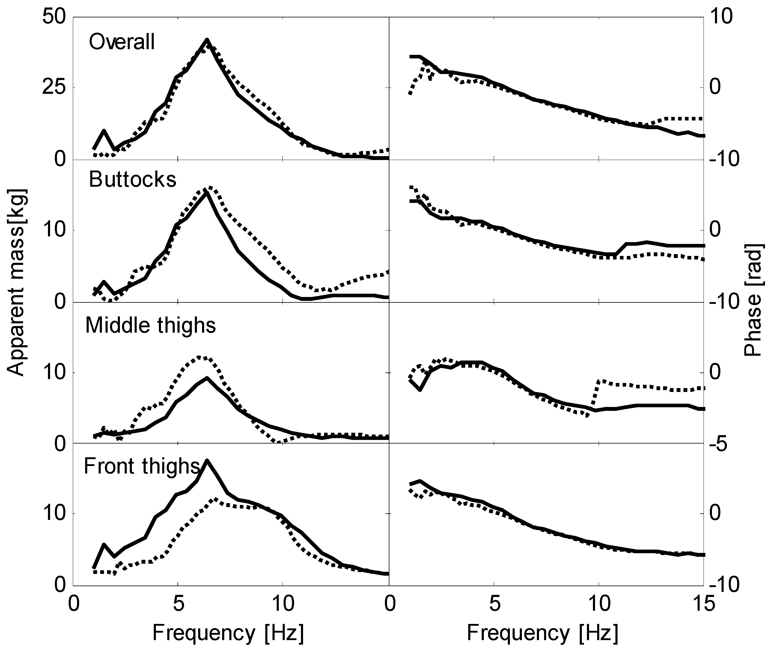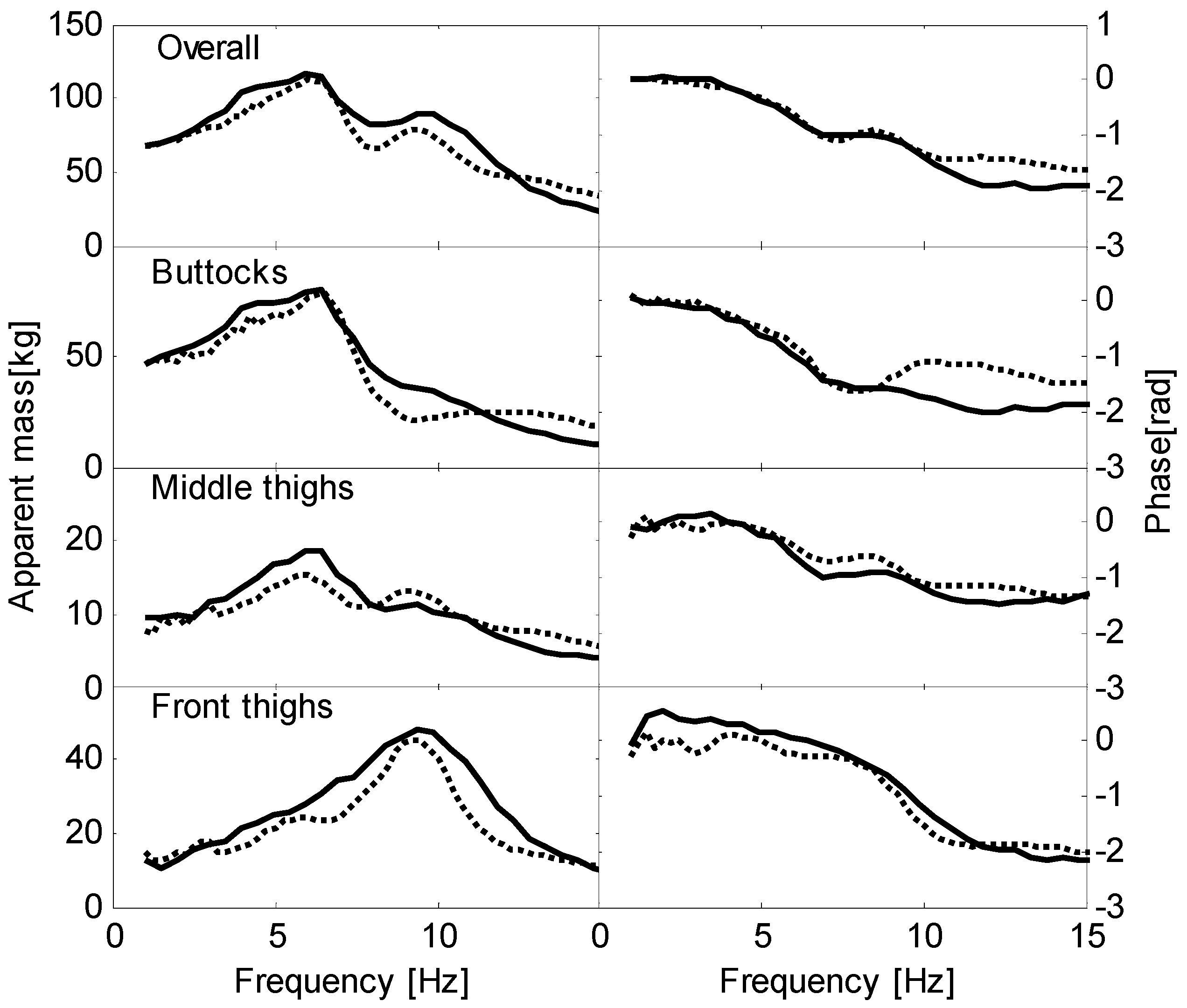 4.2. Overall and Localised Apparent Masses