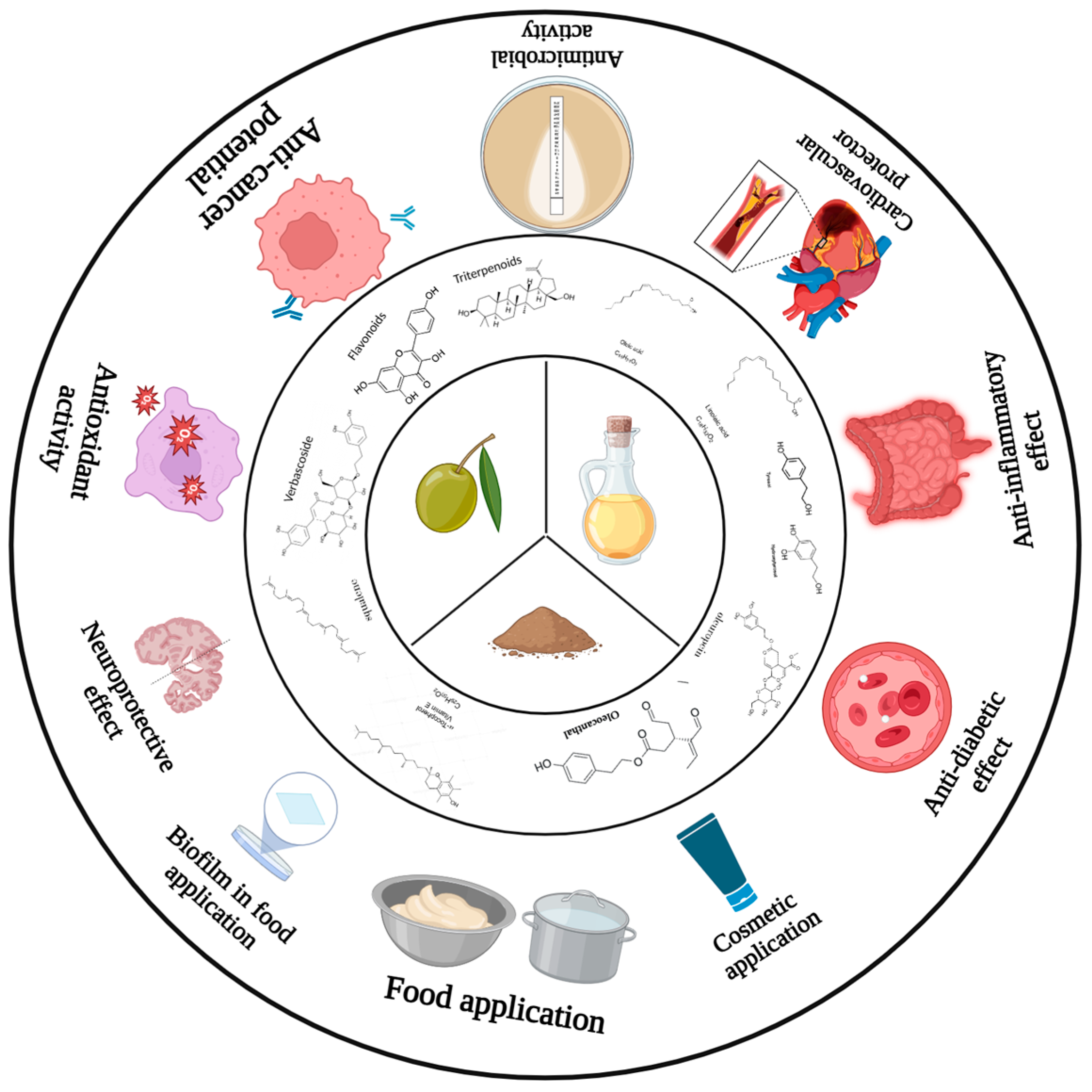 - Tsoupras, A.; Panagopoulou, E.; Kyzas, G. Olive Pomace Bioactives for Functional Foods and Cosmetics. AIMS Agric. Food 2024, 9, 743–766. [Google Scholar] [CrossRef]