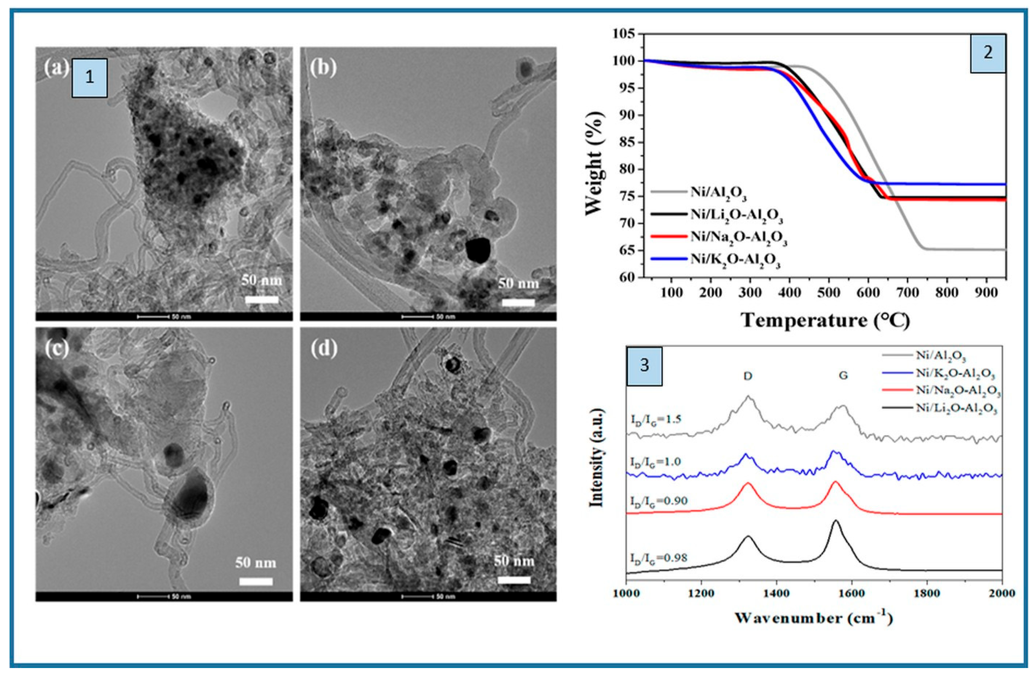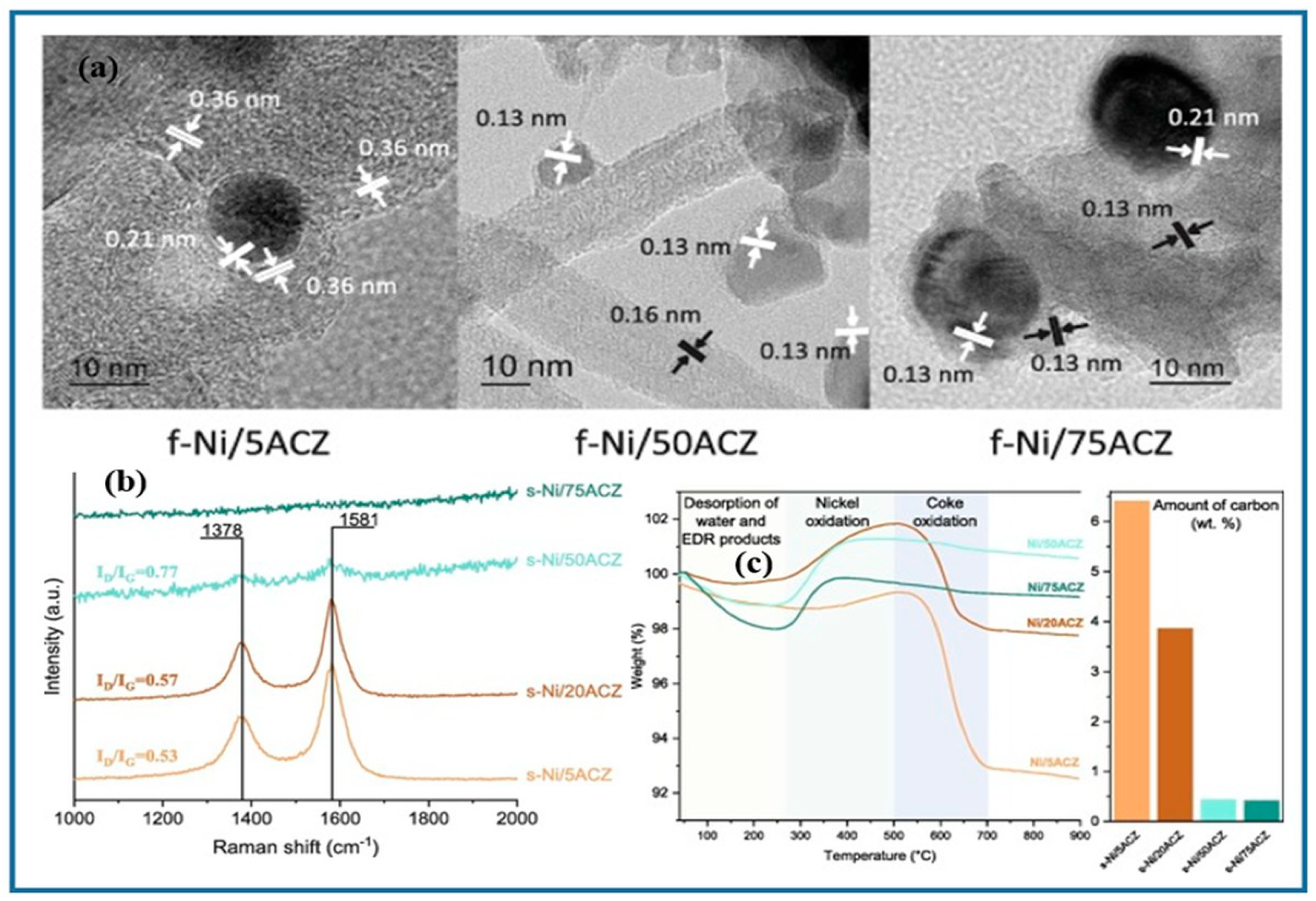 - Osazuwa, O.U.; Ng, K.H. An Overview on the Carbon Deposited during Dry Reforming of Methane (DRM): Its Formation, Deposition, Identification, and Quantification. Results Eng. 2025, 25, 104328. [Google Scholar] [CrossRef]
