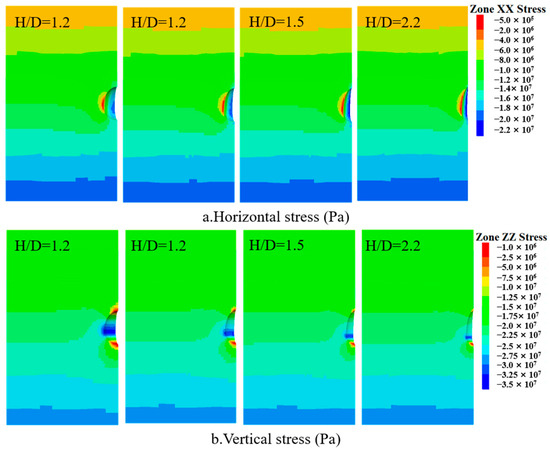 Surrounding rock stress during the operation phase under different height-to-diameter ratios.