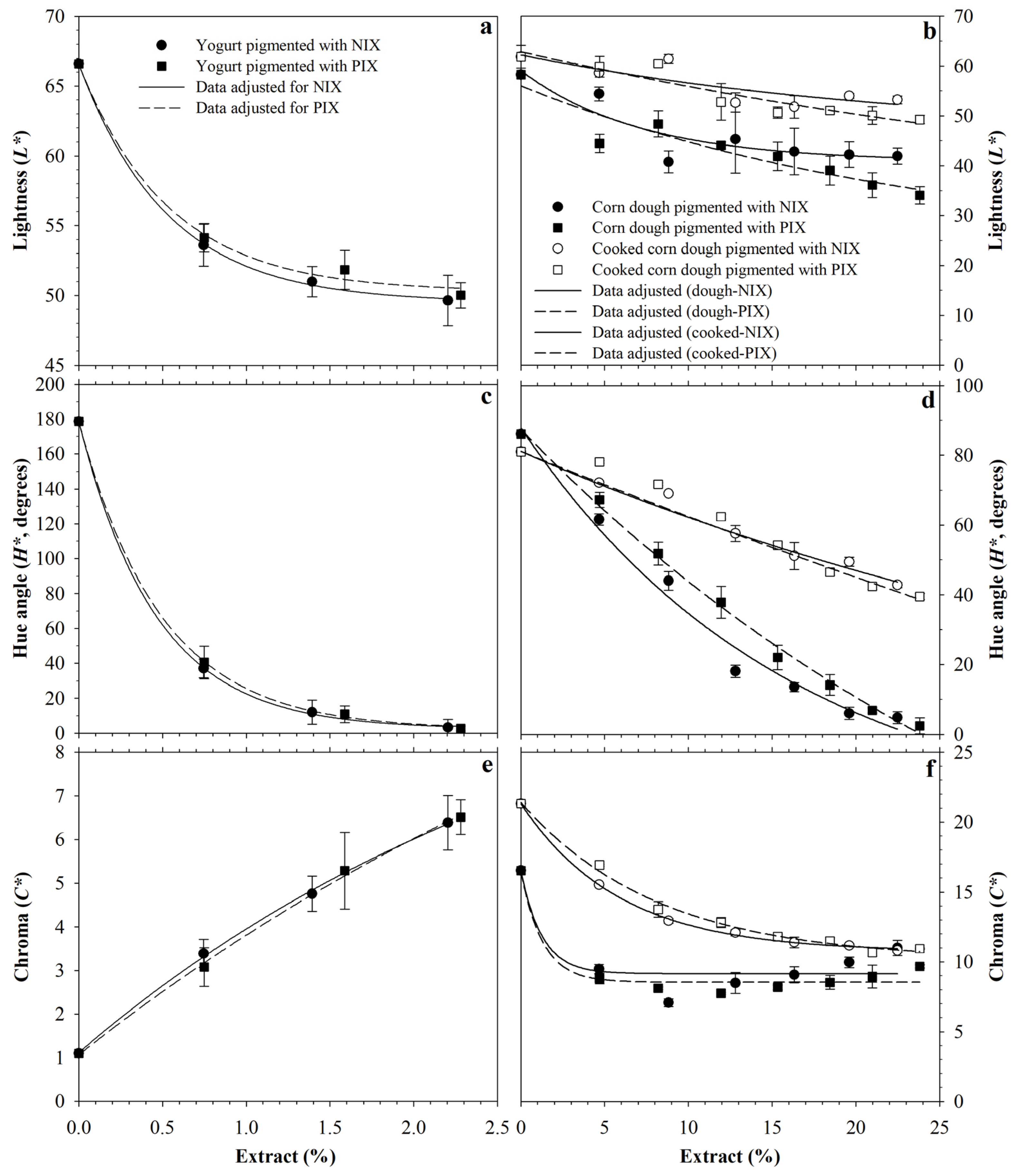 | Pigmentation of cooked corn dough with extract of PIX | |||||||||||
