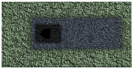 A graduated mesh structure with decreasing mesh density from the inner to the outer subdomain was formed in the flow domain, as shown in Figure 2. A hybrid mesh of tetrahedral and prismatic cells was generated to reduce the number of mesh elements. Prismatic cells were used at the domain boundaries and around the mirror, and the remaining volume was filled with tetrahedral cells. Approximately 90.2% of the total element number produced for each model contained tetrahedral elements and 9.8% contained prismatic elements. In order to detect the separations around the mirror model and in the wake region, the mesh density had been increased in these regions.