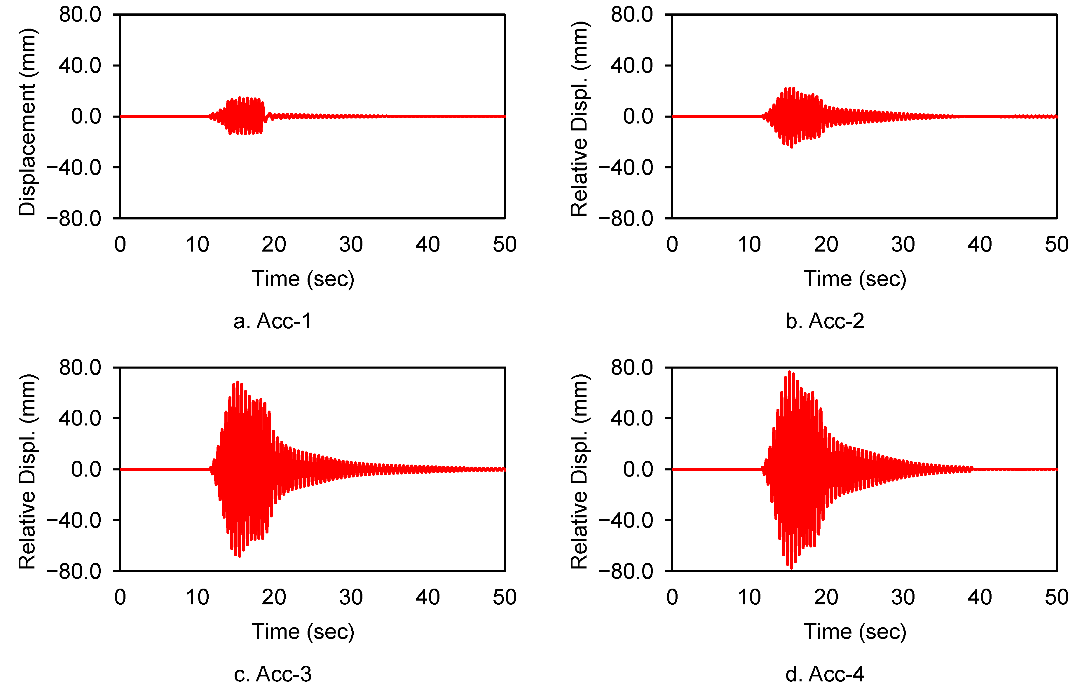 Accelerometer | Acceleration (g) | Relative Displacement (mm) |