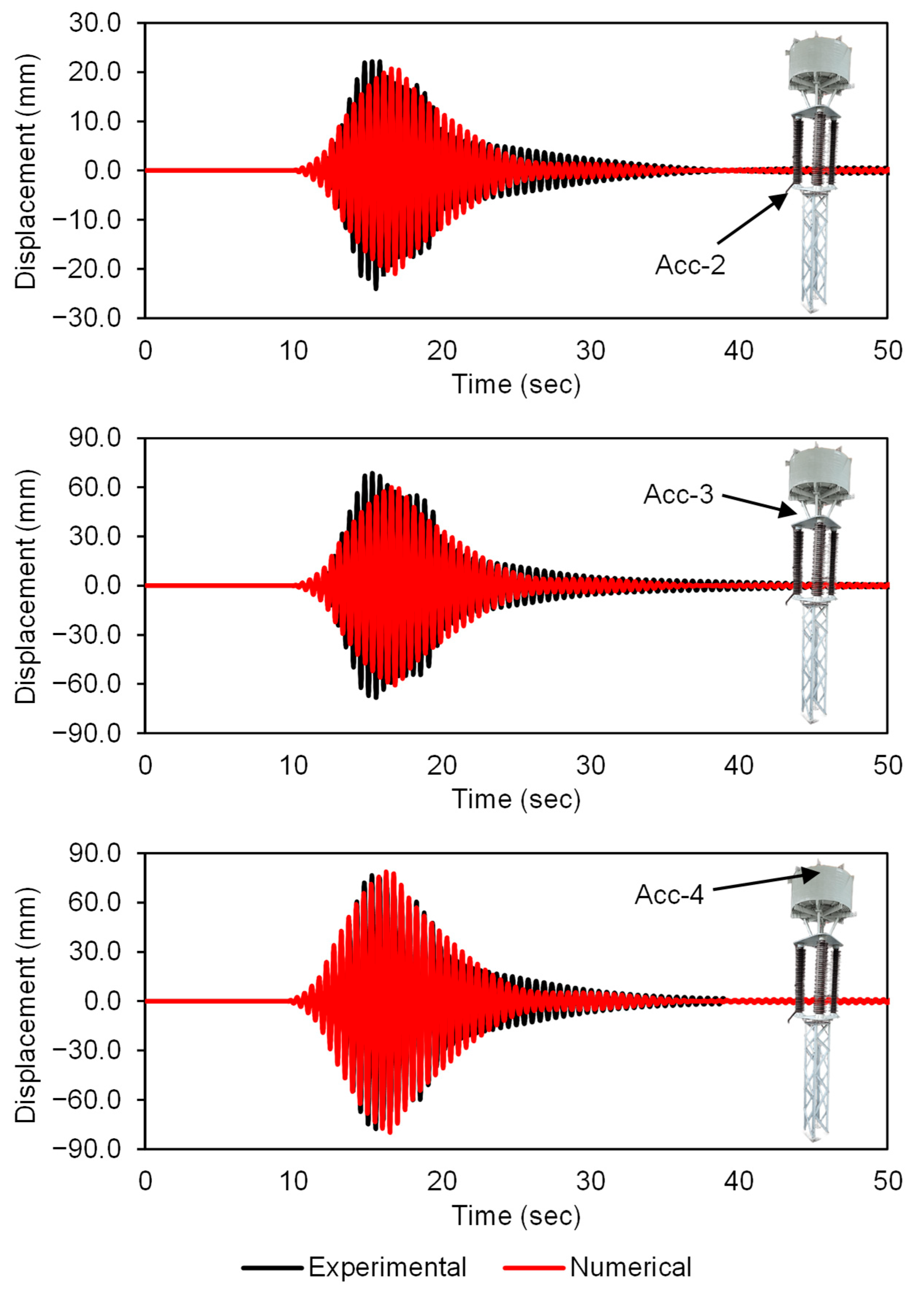 Acc. | Experimental Results (mm) | Numerical Results (mm) | Differences (%) |