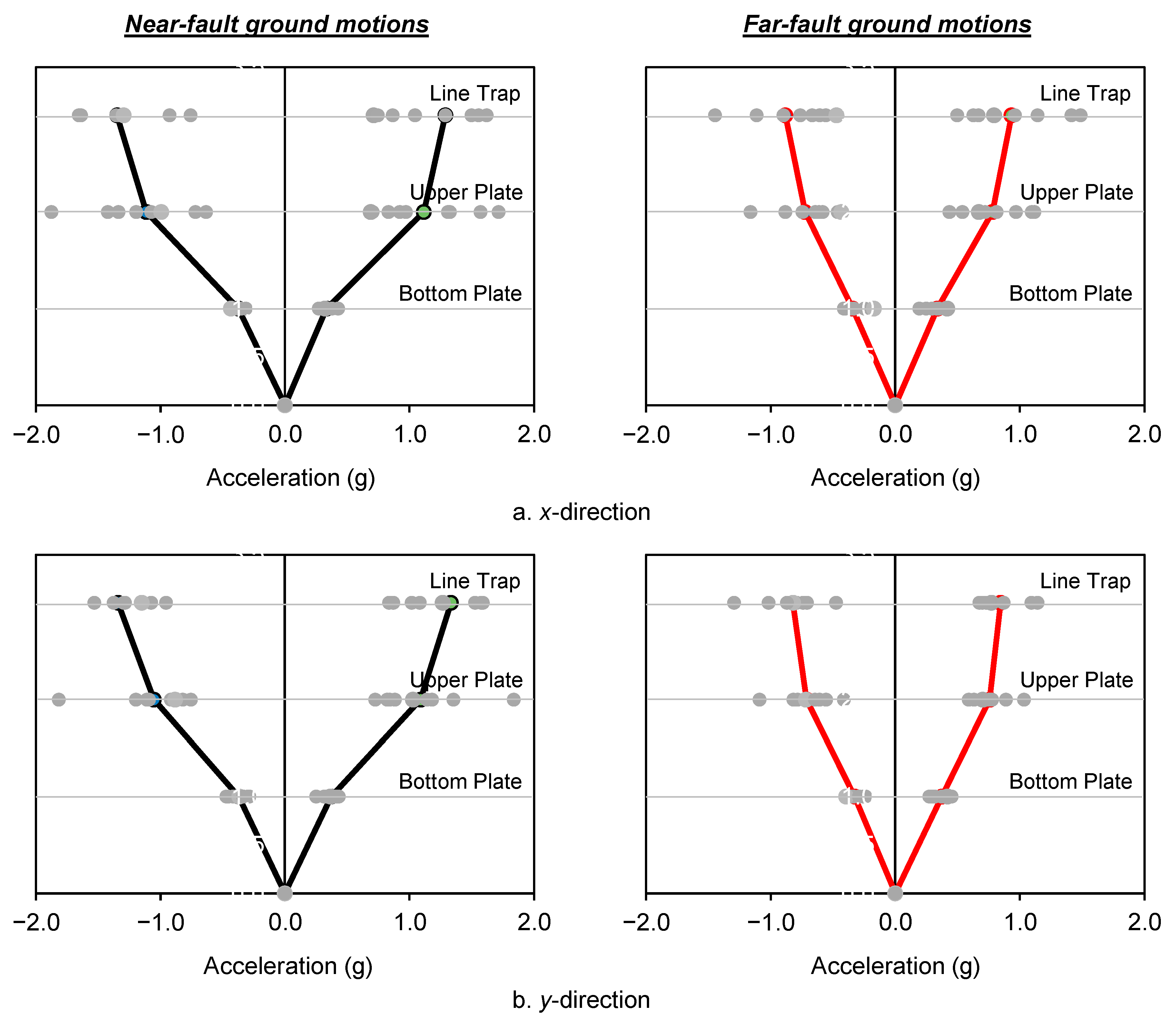 4.3. Dynamic Responses Under to Near-Fault and Far-Fault Ground Motions