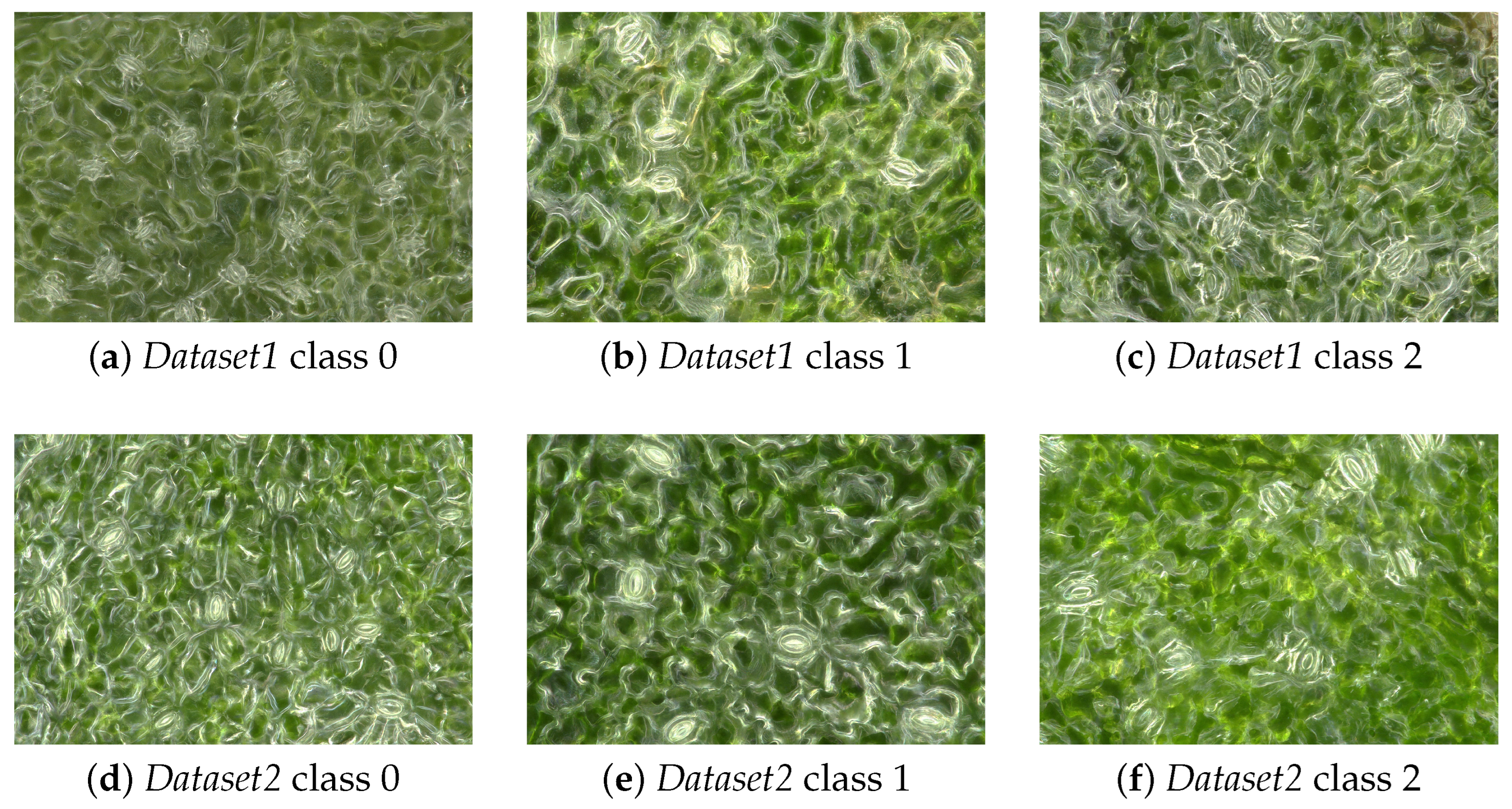 - Razzaq, A.; Shahid, S.; Akram, M.; Ashraf, M.; Iqbal, S.; Hussain, A.; Azam Zia, M.; Qadri, S.; Saher, N.; Shahzad, F.; et al. Stomatal state identification and classification in quinoa microscopic imprints through deep learning. Complexity 2021, 2021, 9938013. [Google Scholar] [CrossRef]