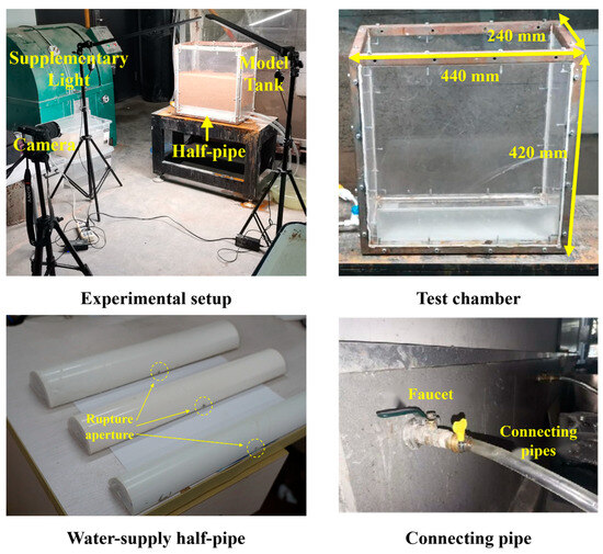 - Chao, H.; Tan, Y.; Su, Z.K. Ground failure and soil erosion caused by bursting of buried water pipeline: Experimental and numerical investigations. Eng. Fail. Anal. 2025, 167, 108965. [Google Scholar] [CrossRef]