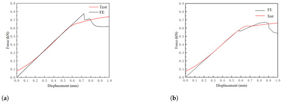 Comparison of load–displacement curves between experimental and numerical results; (a) PPC1T1D and (b) PPC1T1H.