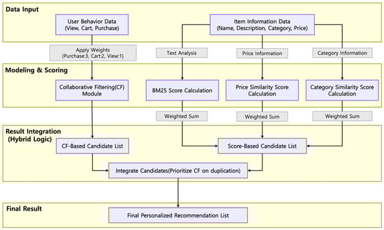 Chicago/Turabian StyleKwon, Youngoh, Gwiman Bak, and Youngchul Bae. 2025. "A Hybrid Recommendation System Based on Similar-Price Content in a Large-Scale E-Commerce Environment" Applied Sciences 15, no. 19: 10758. https://doi.org/10.3390/app151910758