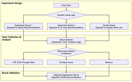- Statistical testing: CTR, purchase counts, and revenue are compared across groups to assess whether differences are statistically significant. Performance is evaluated to determine whether the hybrid method outperforms the CF-only and popular-products baselines.