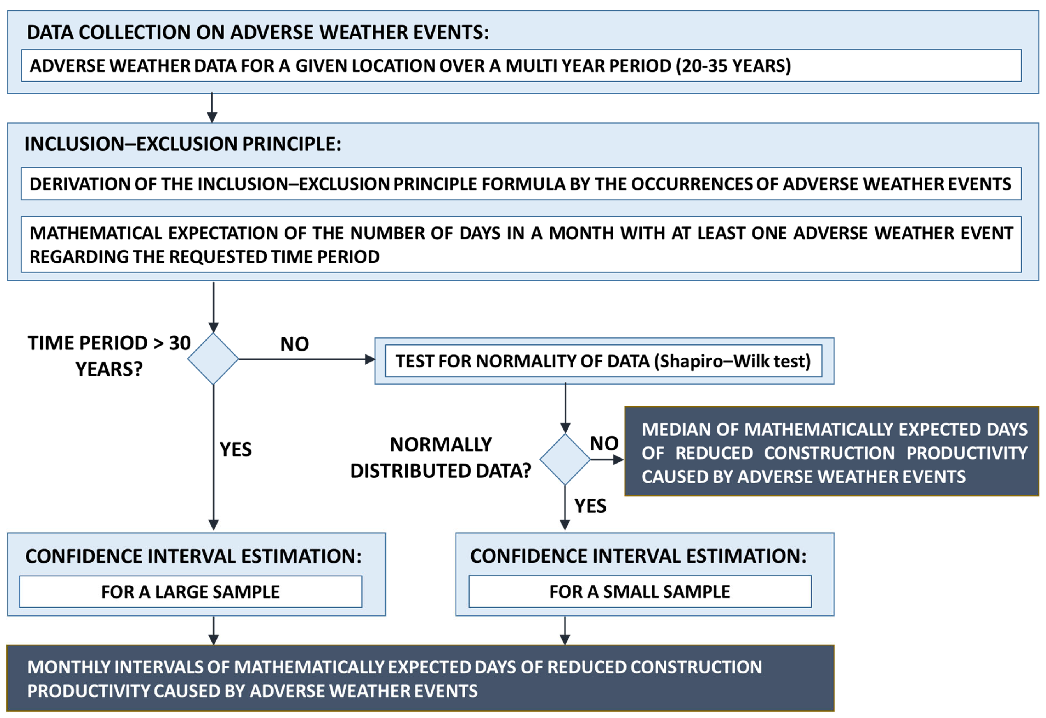 - Šopić, M.; Car-Pušić, D. Statistička obrada podataka o vremenskim neprilikama u svrhu određivanja mjesečnog intervala s matematički očekivanim danima zastoja pri radu gradilišta na području grada Rijeke. Zb. Rad. (Građevinski Fak. Sveučilišta U Rijeci) 2018, 21, 67–85. [Google Scholar] [CrossRef]