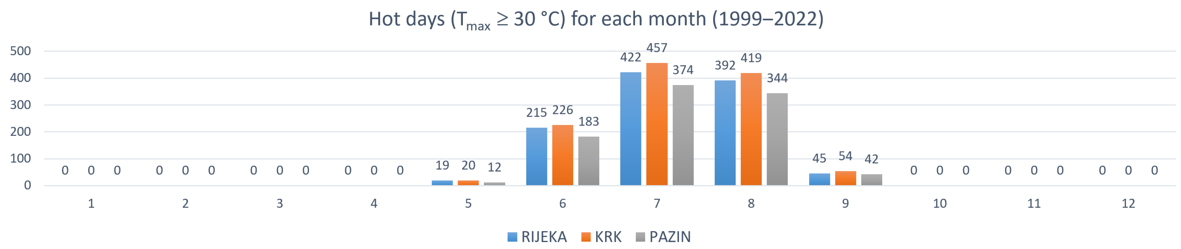4.2. Data Processing for Rijeka, Krk, and Pazin