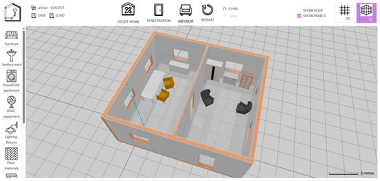 A. Web Interface: The web interface serves as the initial point of interaction in the multiplatform house design system. It provides users with a browser-based environment to model a customizable 3D house layout using standard architectural elements. The system supports intuitive interaction through client-side rendering and offers functionality suitable for both casual users and technically advanced use cases. The graphical user interface (GUI) of the web interface is depicted in Figure 2.