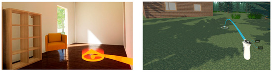 Both VR applications follow the same general workflow. Upon launch, the application retrieves the user’s saved house model from the server and loads it into the virtual scene. Users are initially presented with a tutorial, which combines textual instructions and short video demonstrations to introduce the VR application and basic interaction techniques. The tutorial screens and instructions related to controller bindings are shown in Figure 6.