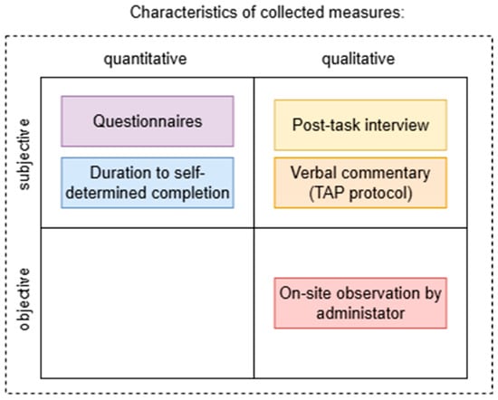 Throughout each task, we collected both qualitative and quantitative data, employing a triangulation approach that combines multiple data sources to improve the validity of the study [21]. We triangulated between qualitative and quantitative, as well as subjective and objective measures as illustrated in Figure 9.