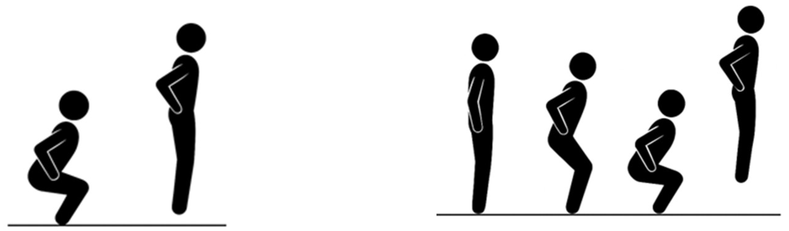 Figure 1. Standardized execution of squat jump (left) and countermovement jump (right) tests.