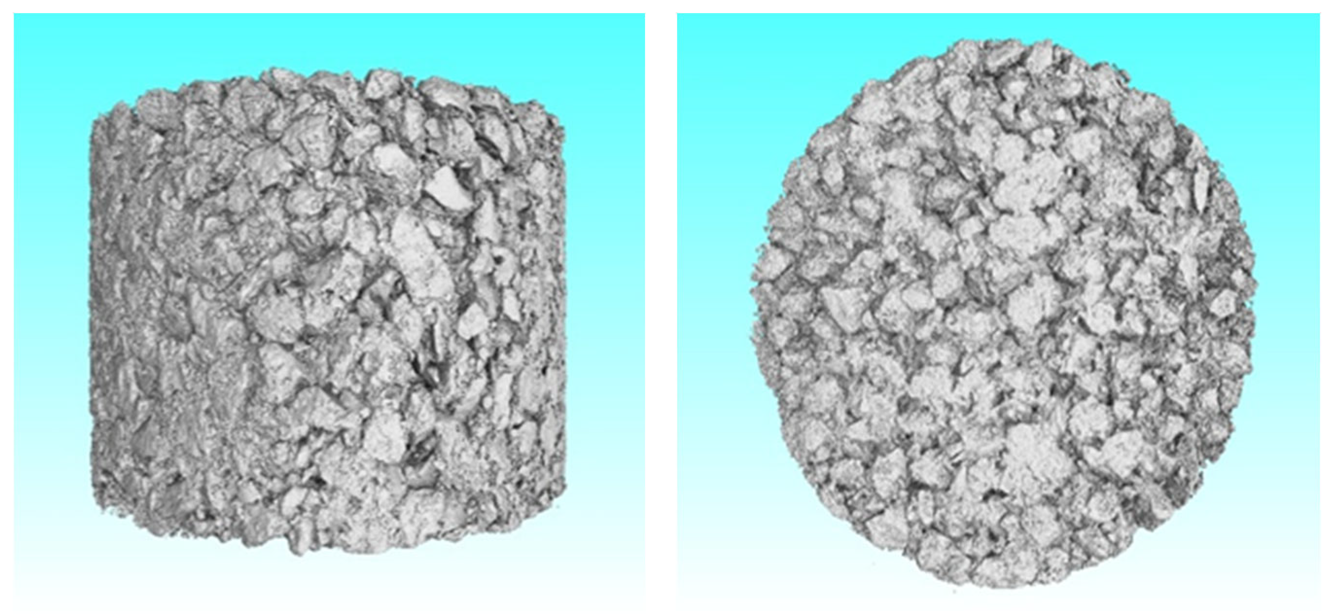 - Li, Y.; Wang, Q.; Liu, B.; Tan, Y. Meso-Structural Modeling of Asphalt Mixtures Using Computed Tomography and Discrete Element Method with Indirect Tensile Testing. Materials 2025, 18, 2566. [Google Scholar] [CrossRef] [PubMed]