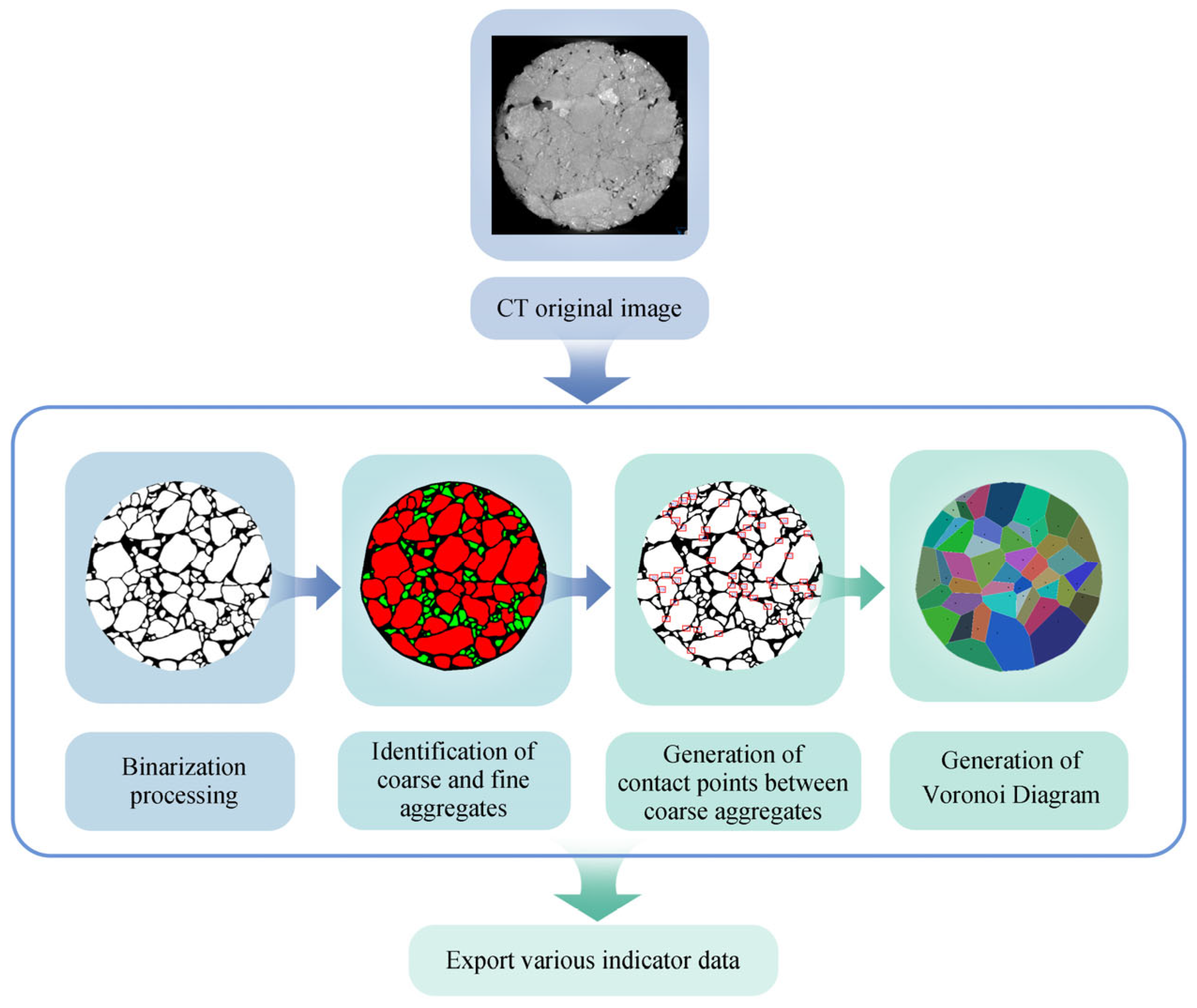 2.4. Voronoi-Based Evaluation Method for Skeletal Contact in Asphalt Mixtures