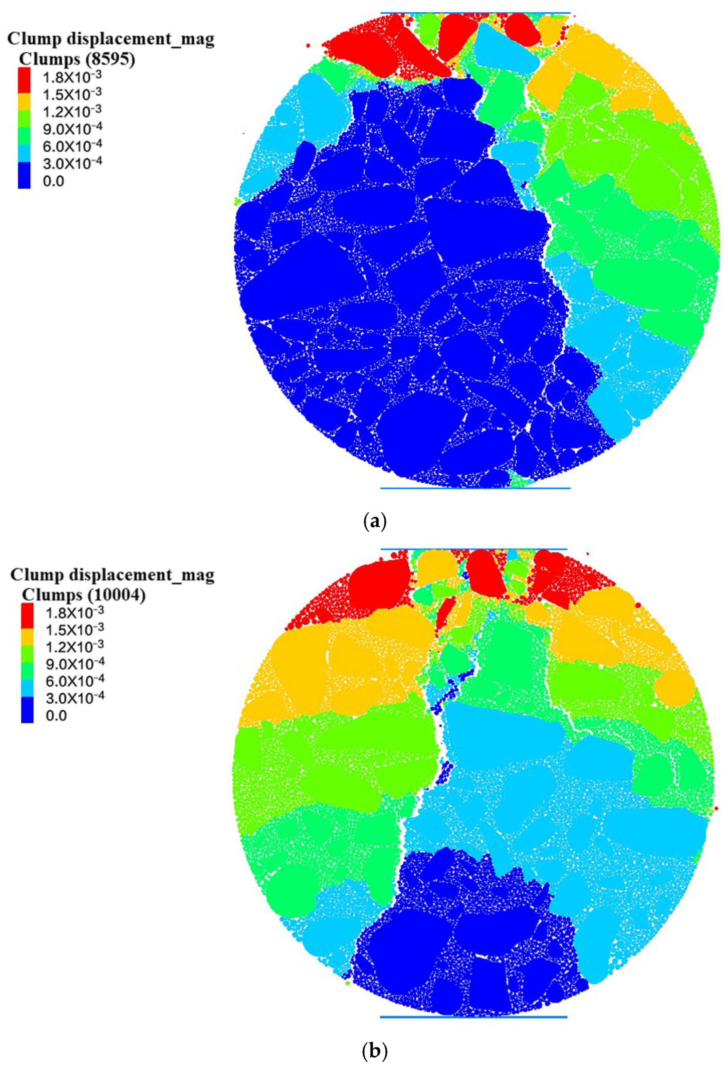 Parallel bond tangential tensile strength | 3.5 × 106 | 3 × 106 | 2.5 × 106 |