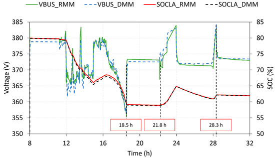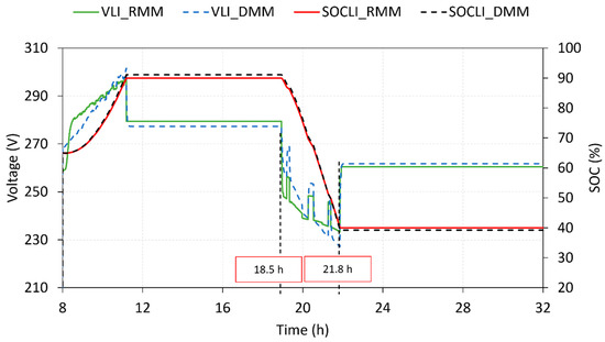 Analogous to LABB, it has been considered that the parameters and may vary in each sampling period, depending on the characteristic parameters of the battery, accumulated degradation, etc. The expressions modelled and validated in [64] can be used for their calculation.