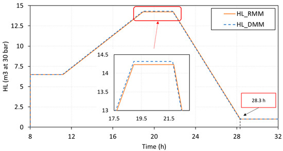 | Level of hydrogen stored in the hydrogen tank (Nm3 or m3 at 30 bar) | |