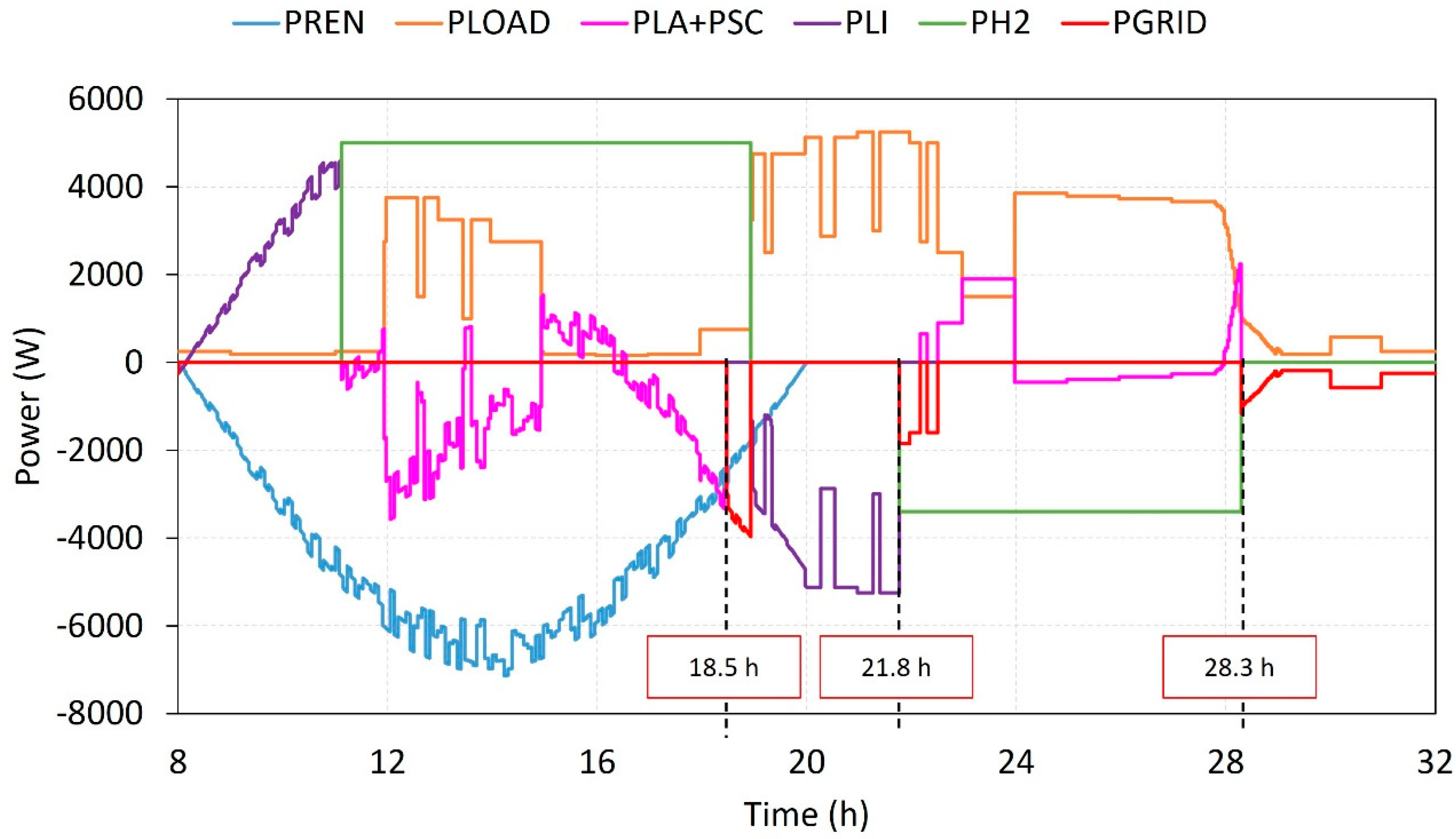 On the other hand, the HESS operates as a long-term storage system, allowing hydrogen production, storage, and subsequent conversion back to electrical energy in a closed loop system.