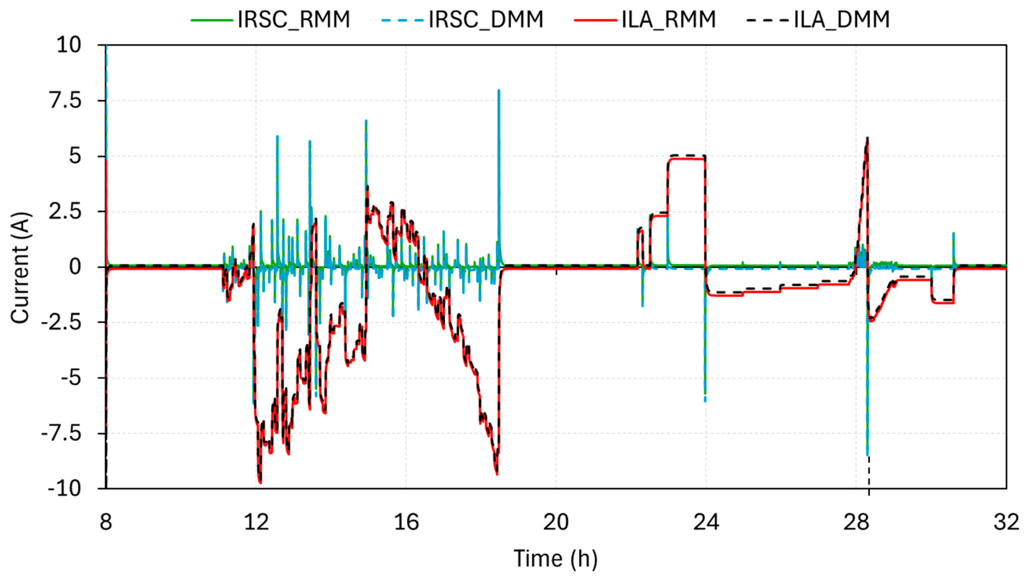 Analogous to LABB, it has been considered that the parameters and may vary in each sampling period, depending on the characteristic parameters of the battery, accumulated degradation, etc. The expressions modelled and validated in [64] can be used for their calculation.