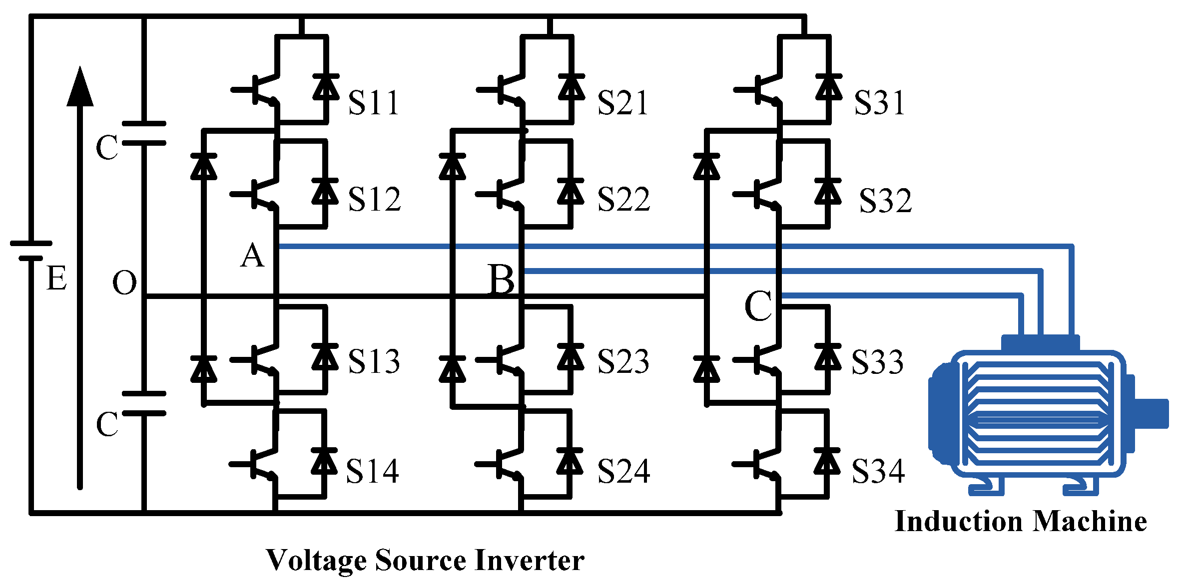 - Das, S.; Narayanan, G. Novel switching sequences for a space-vector-modulated three-level inverter. IEEE Trans. Ind. Electron. 2011, 59, 1477–1487. [Google Scholar]