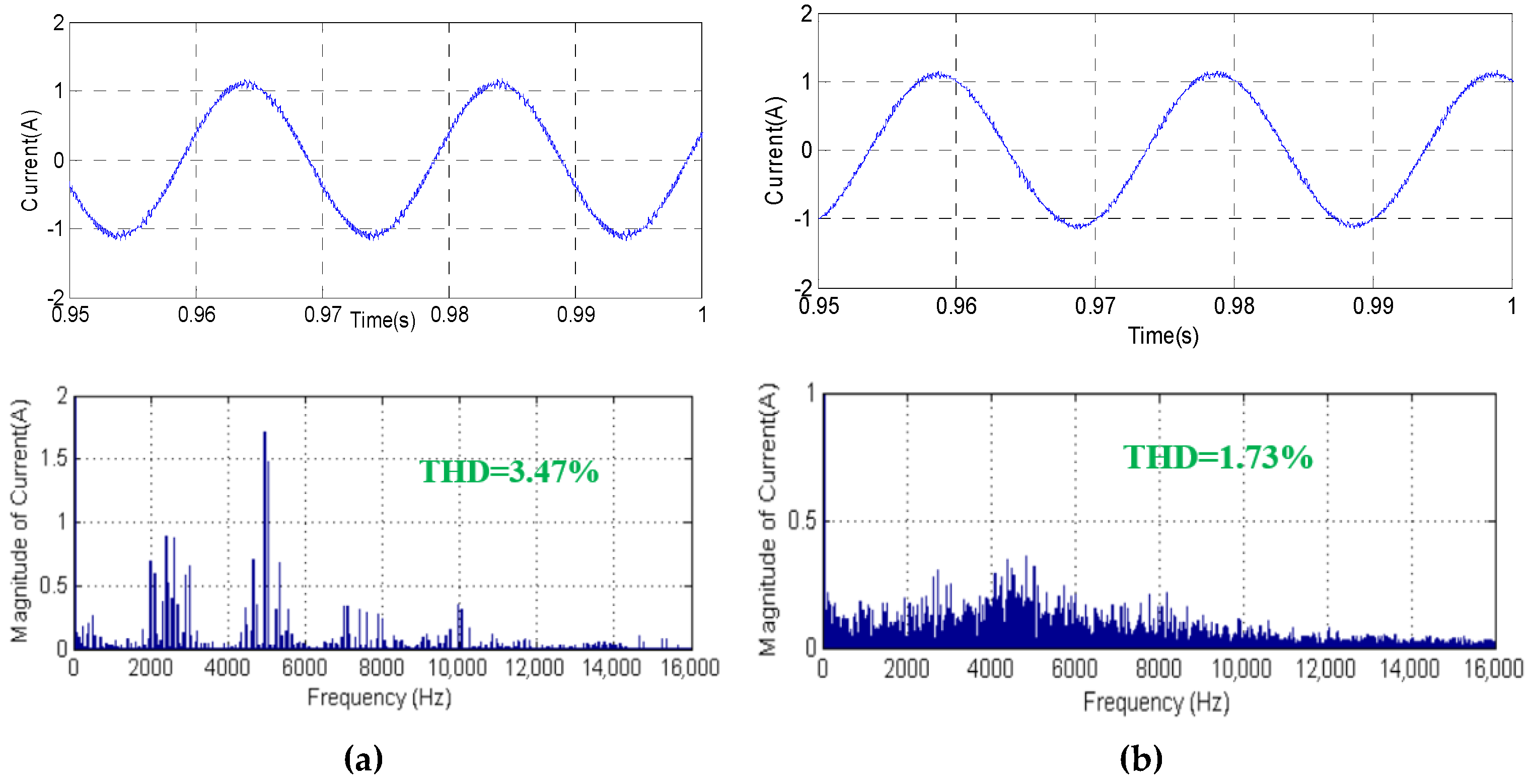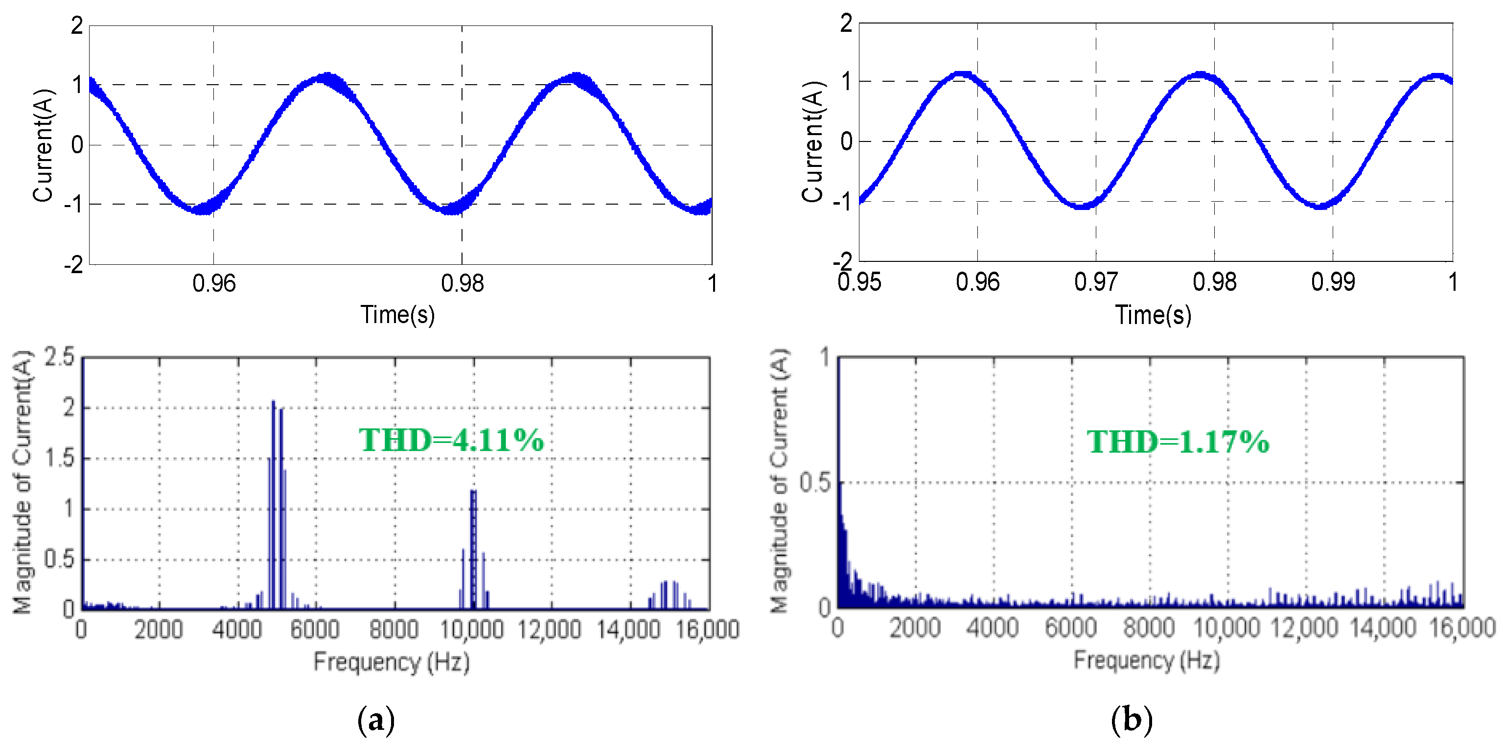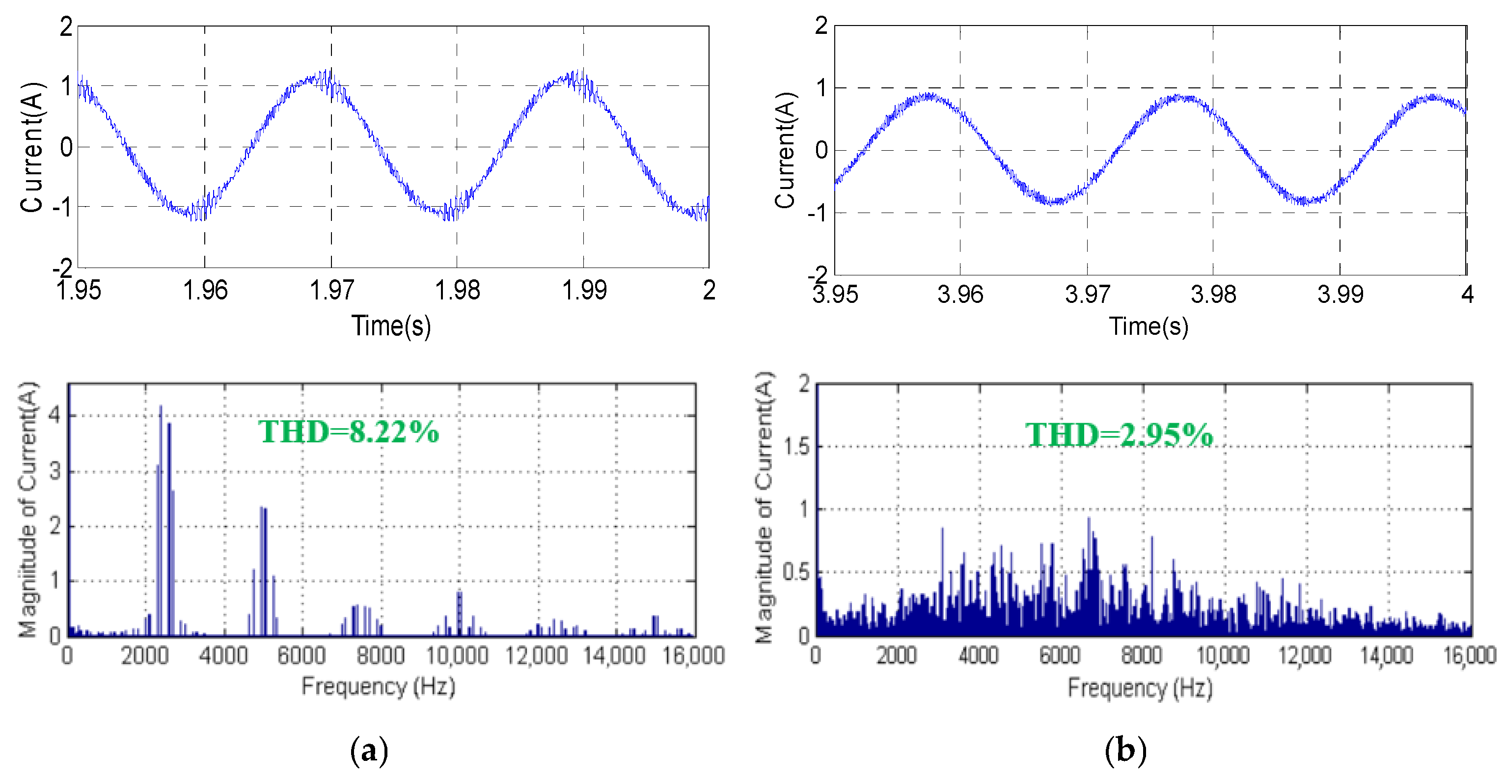 - Huang, Y.; Xu, Y.; Li, Y.; Yang, G.; Zou, J. PWM frequency voltage noise cancelation in three-phase VSI using the novel SVPWM strategy. IEEE Trans. Power Electron. 2017, 33, 8596–8606. [Google Scholar] [CrossRef]